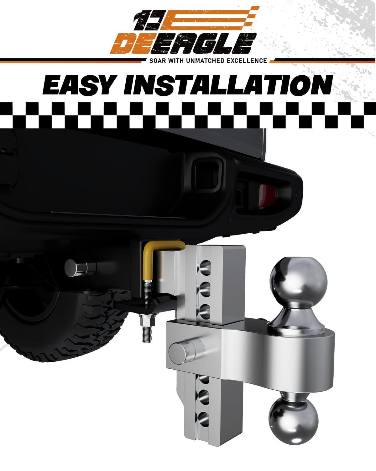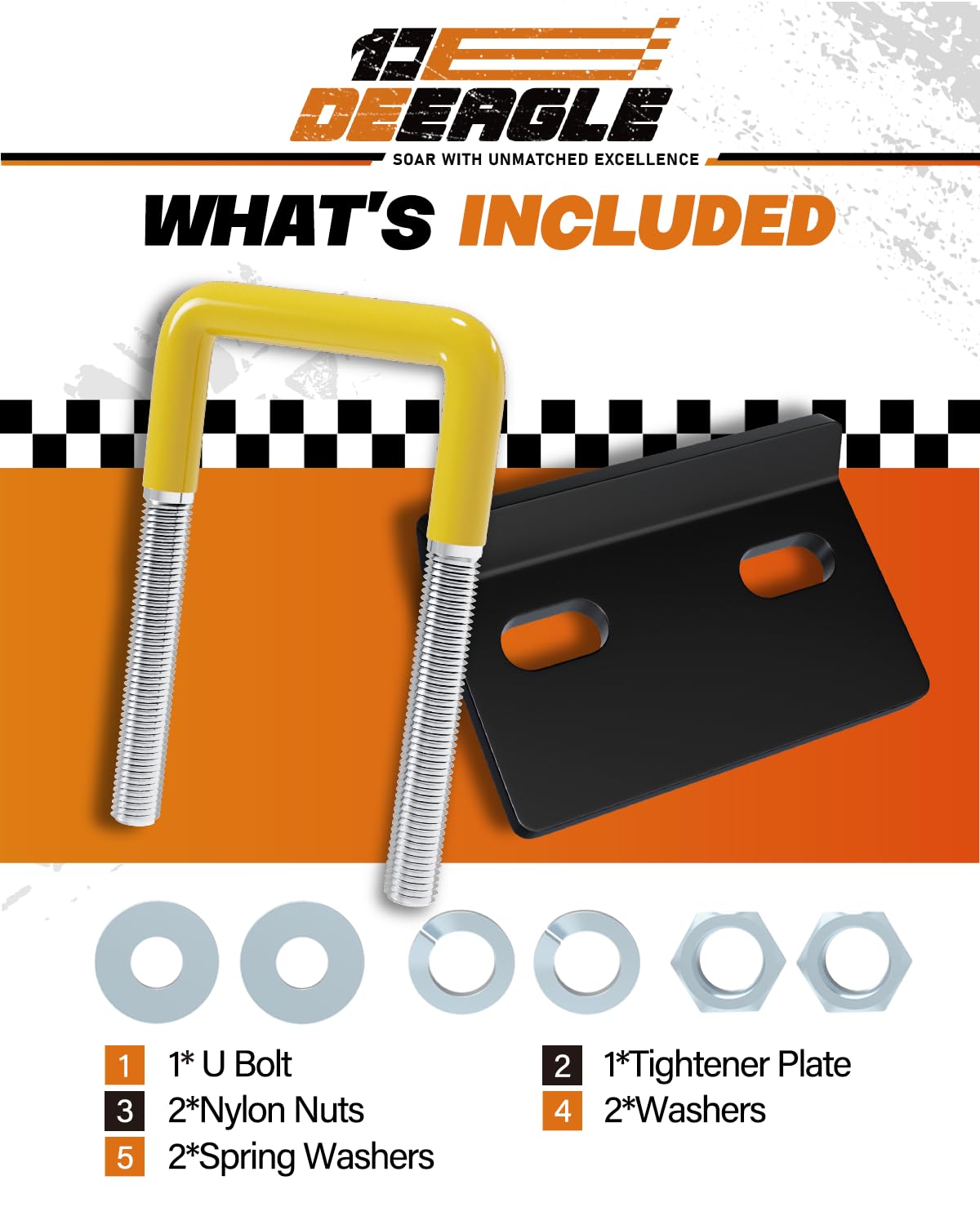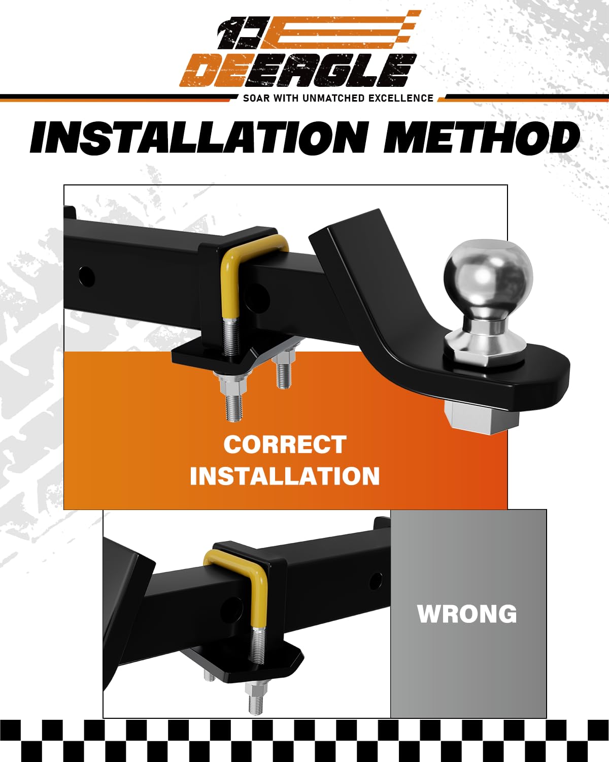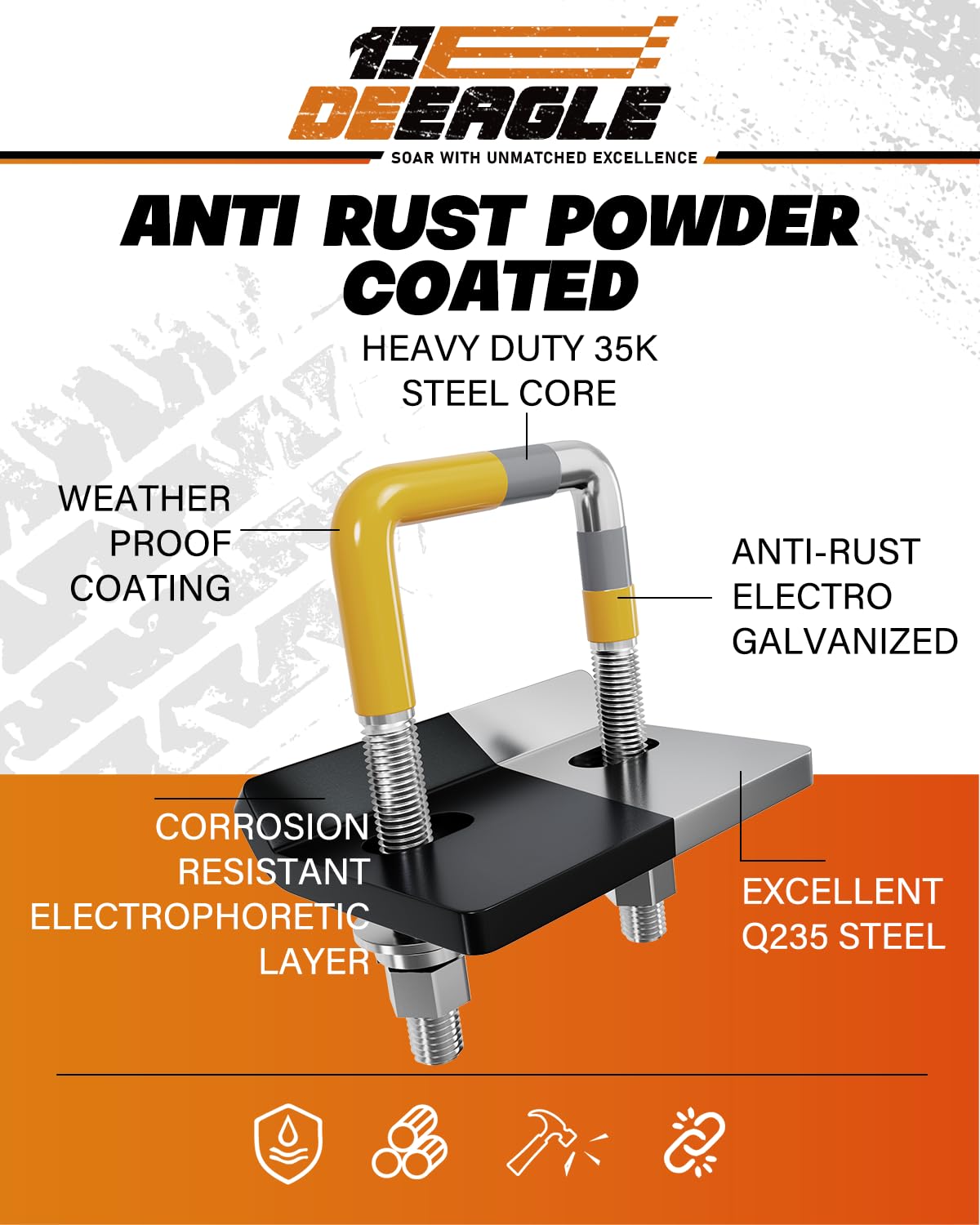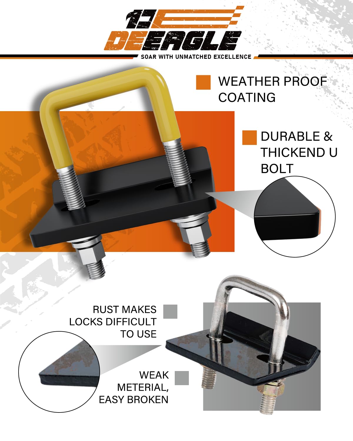 Robust Tightener: 0.28" powder coated with DEEAGLE hitch tightener plate to achieve better shock absorption and anti-cuts. Rubber-coated U-bolts for tougher bumps and poor weather. The whole item is built to last and rust-free