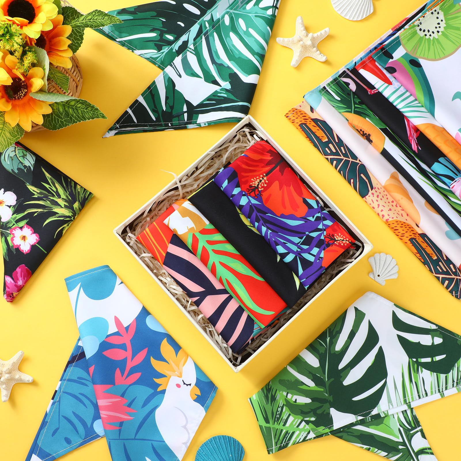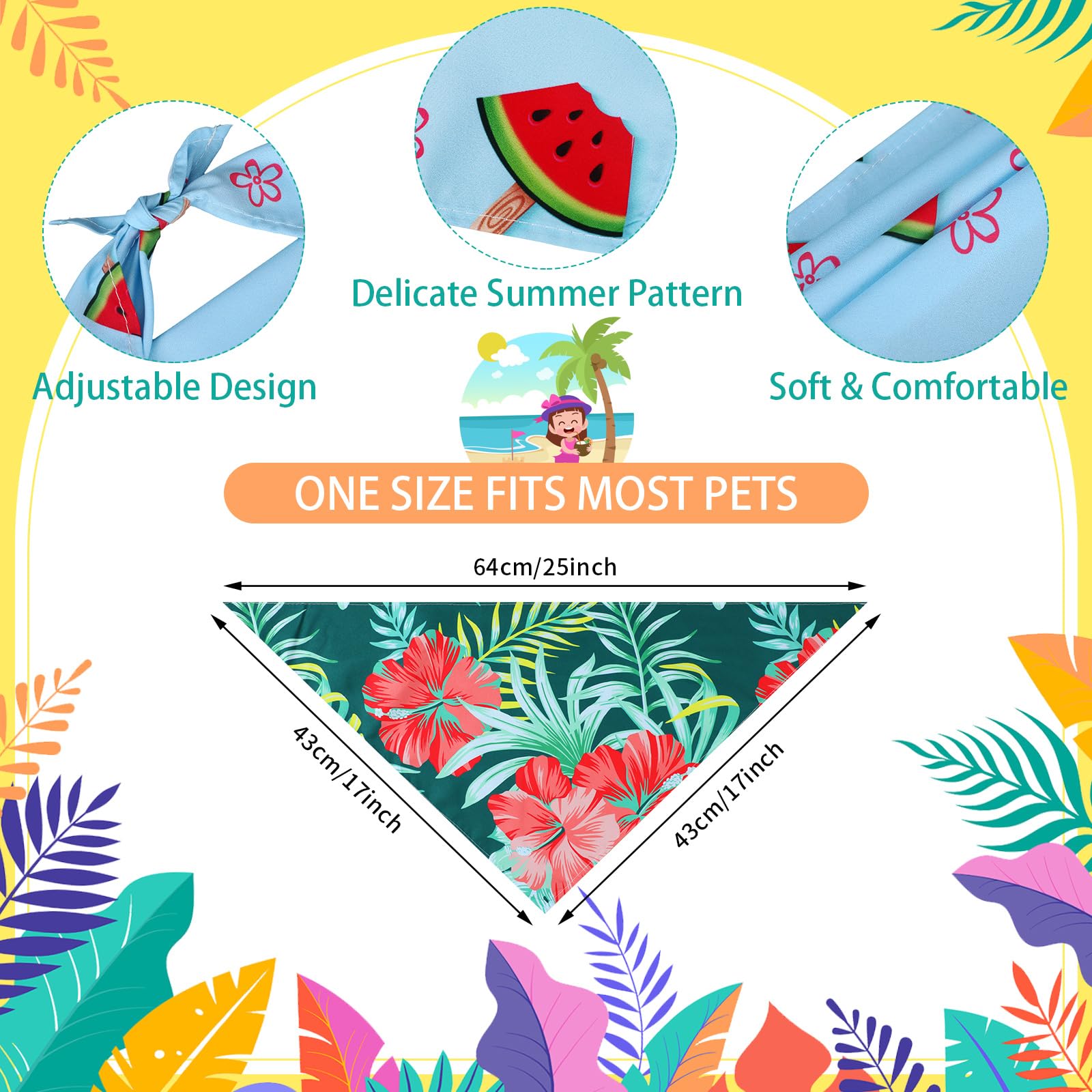 Comfortable and Breathable: these bulk hawaiian dog bandanas are made of polyester material, soft and safe, lightweight and breathable to wear, ensuring that your dog can stay comfortable the whole day; And with adjustable design, easy to wear, the triangle shape allows for secure and adjustable fitting, keeping the pet bandana in place during playtime or outdoor adventures
