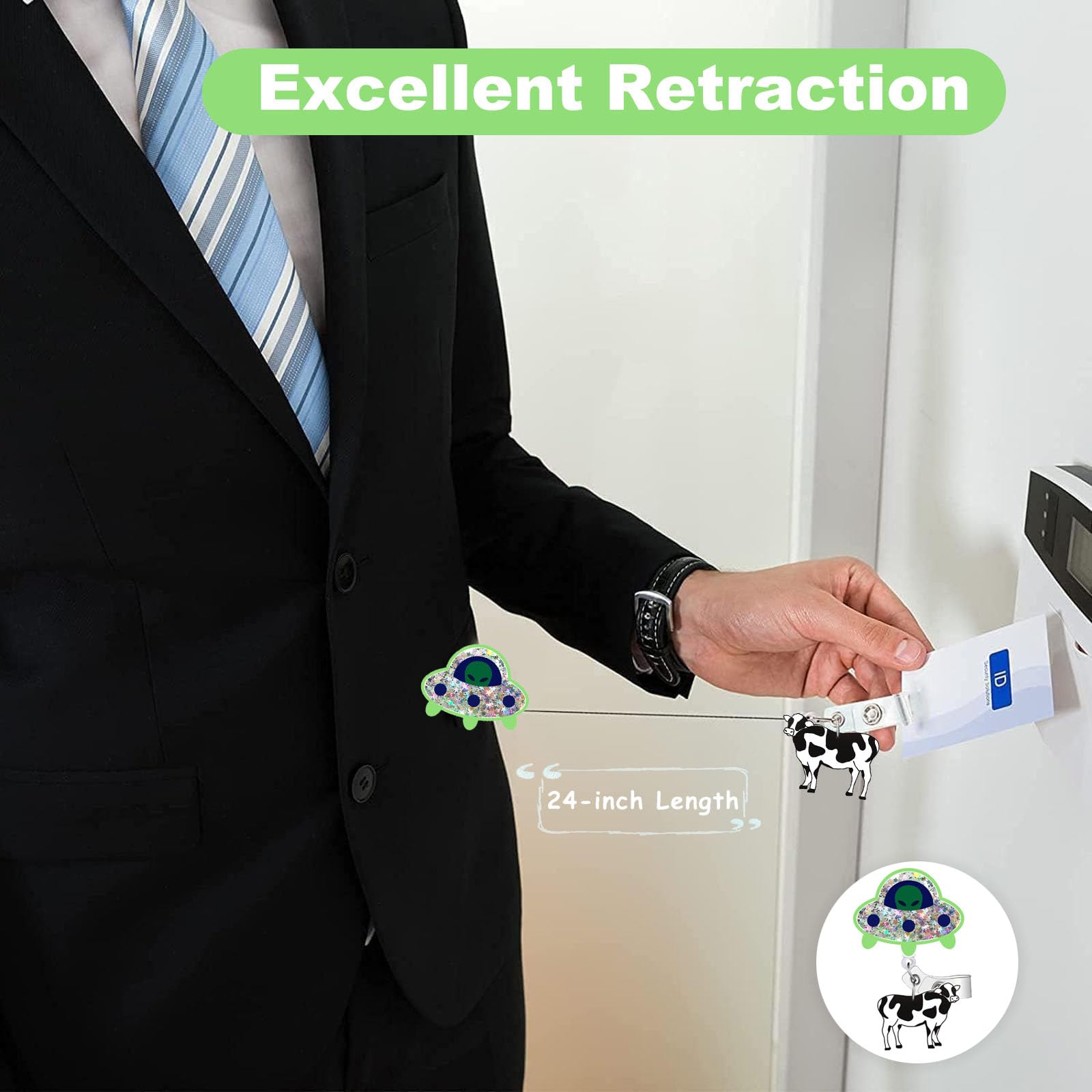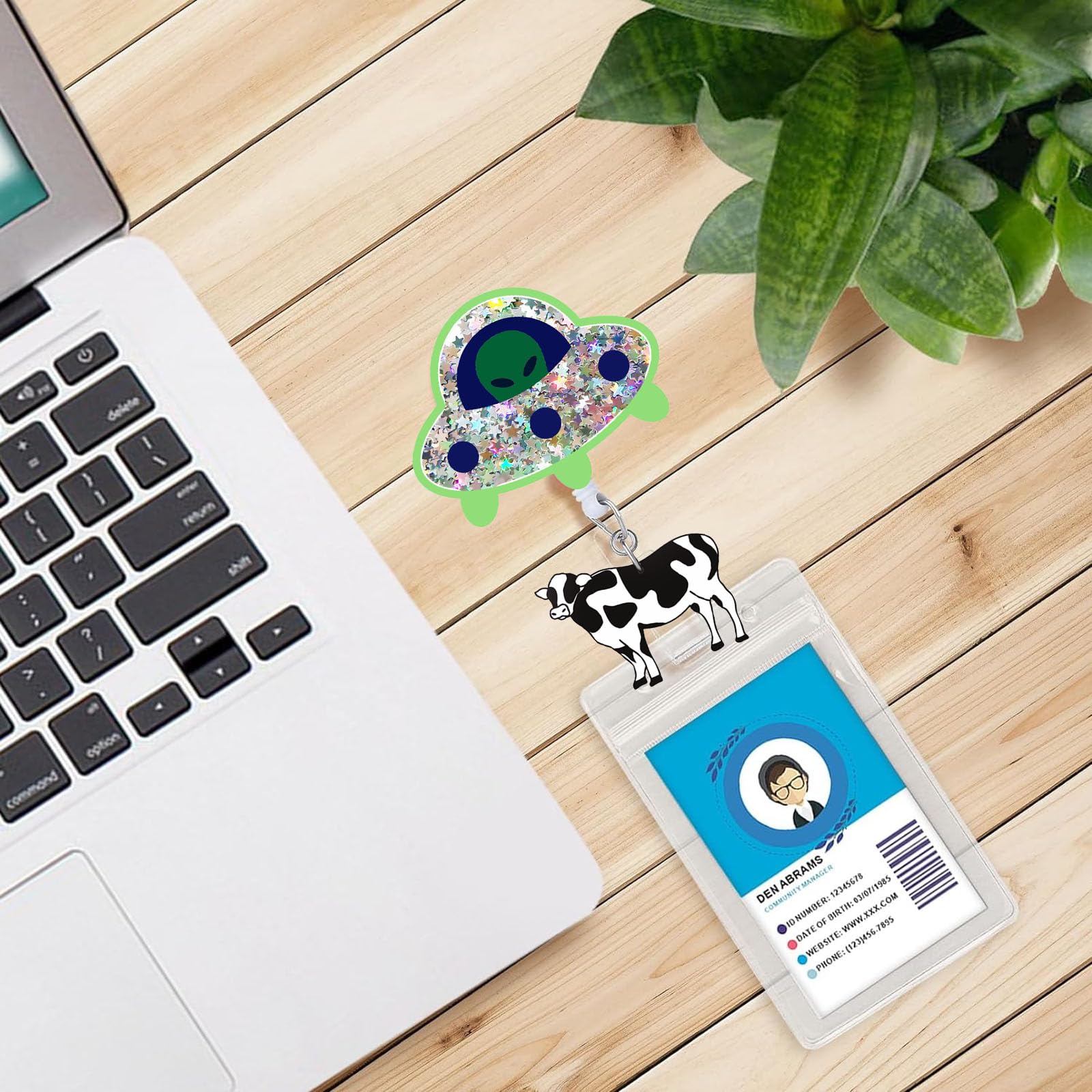 Unique and Design: This cute UFO Cow badge reel combines fun and creativity with practicality. Featuring an adorable cow in a UFO spaceship, it’s an eye-catching accessory that’s sure to start conversations and add a playful touch to your work attire.