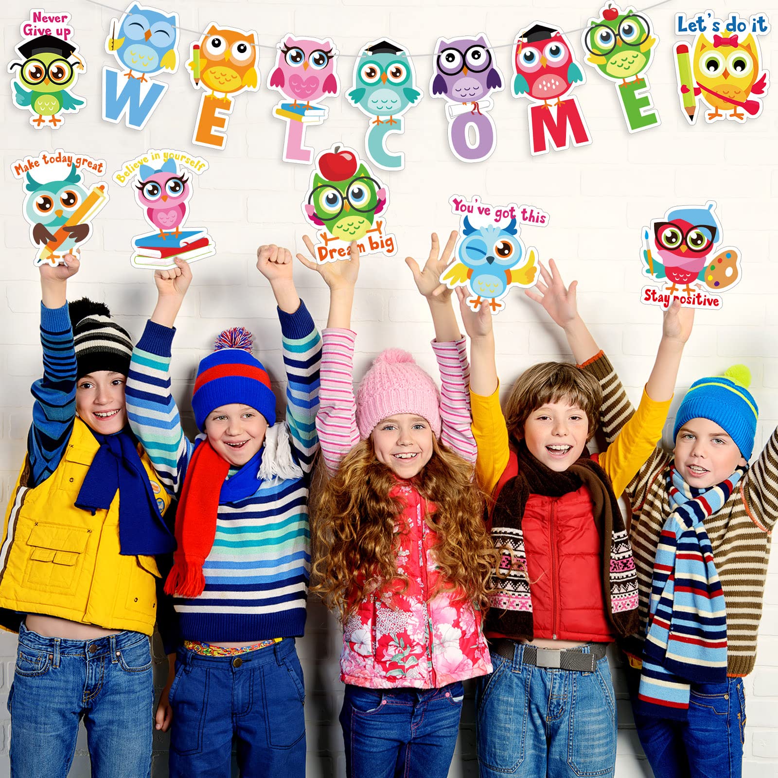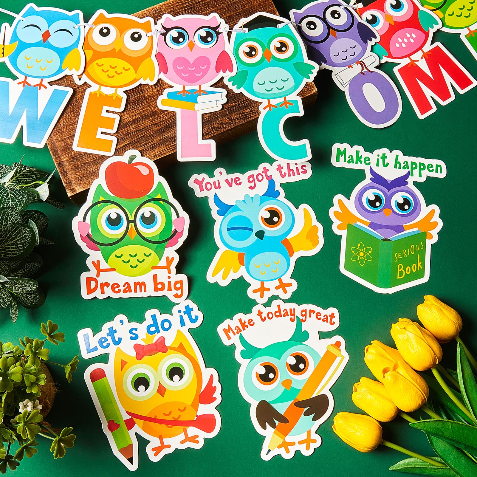 Package Information: you will get a set of owl welcome banner, 32 pieces of owls positive cards in 8 styles, and 2 pieces glue point, totally 35 pieces; Sufficient quantity will meet your using needs