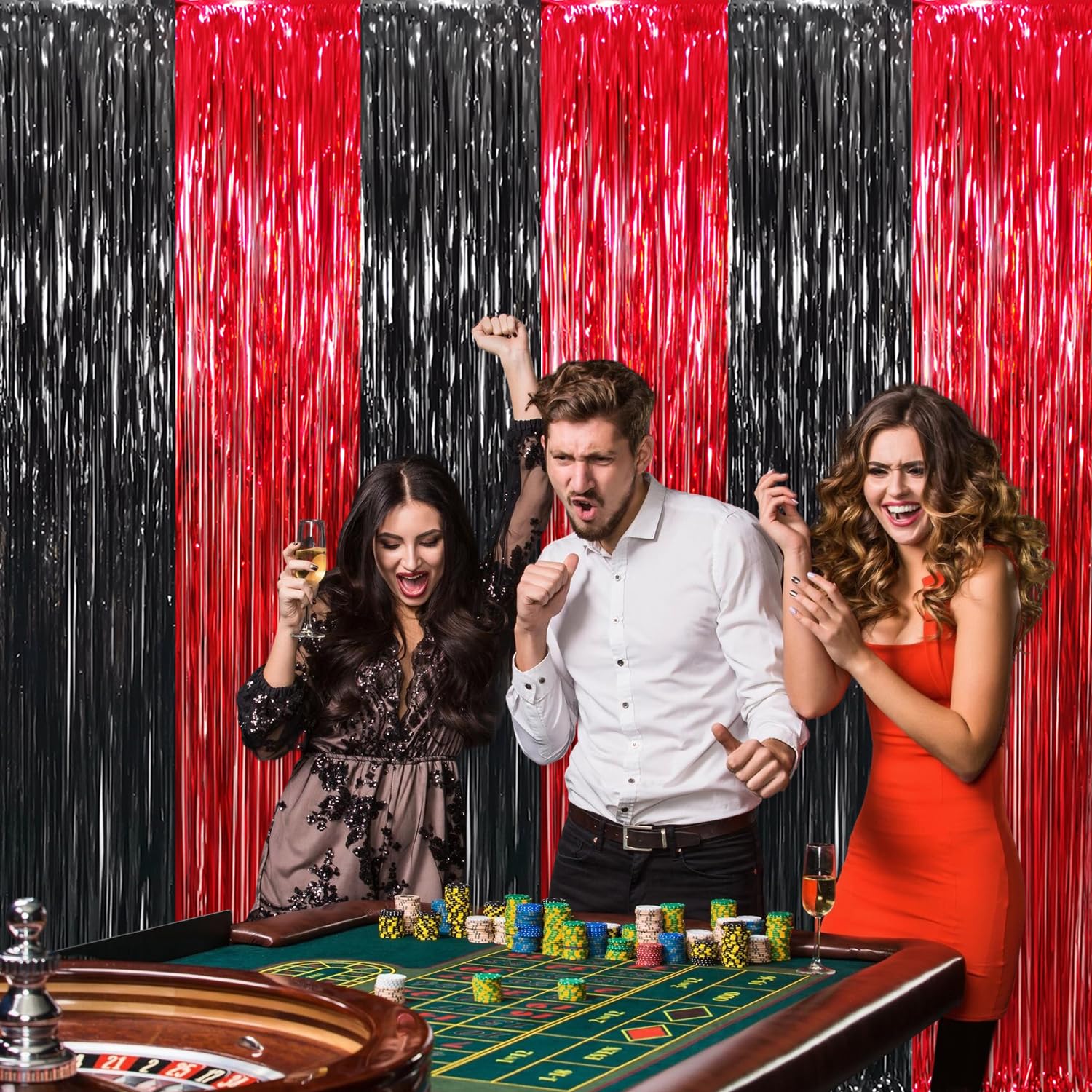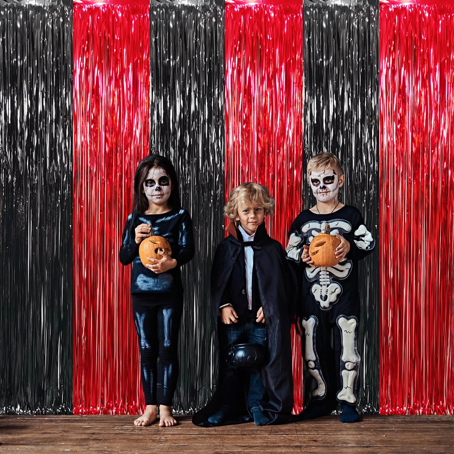 Package Includes:2 pack Black&Red foil fringe curtains,3.2 ft x 8.2 ft each,suitable for hanging on a door or coverage a wall fully