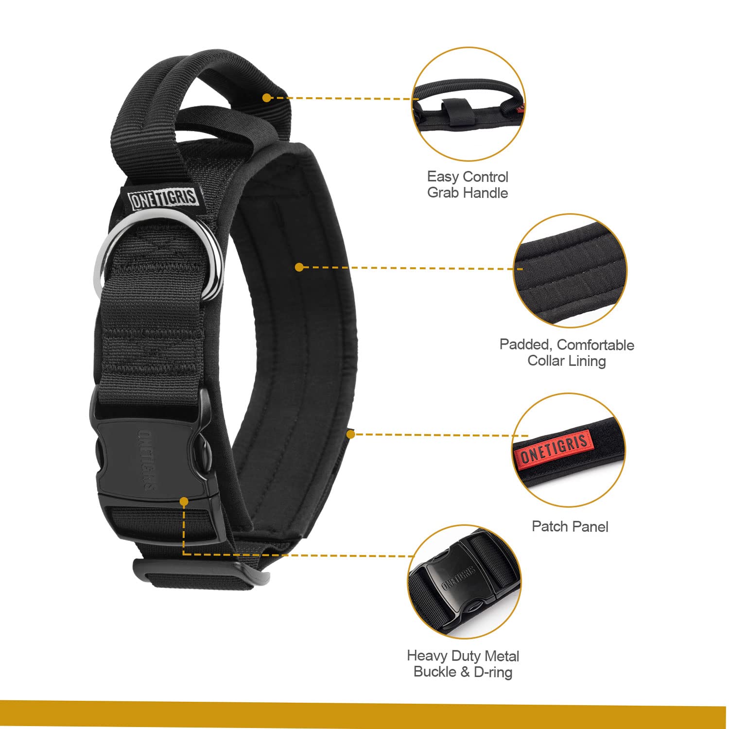 【Practical Design】Military Training Nylon Dog Collar has special control handle,can efficiently control your dog when training, patrol,hiking, jogging, hunting, camping, working, running, jumping, traveling, camping.fits lots of medium and large dogs