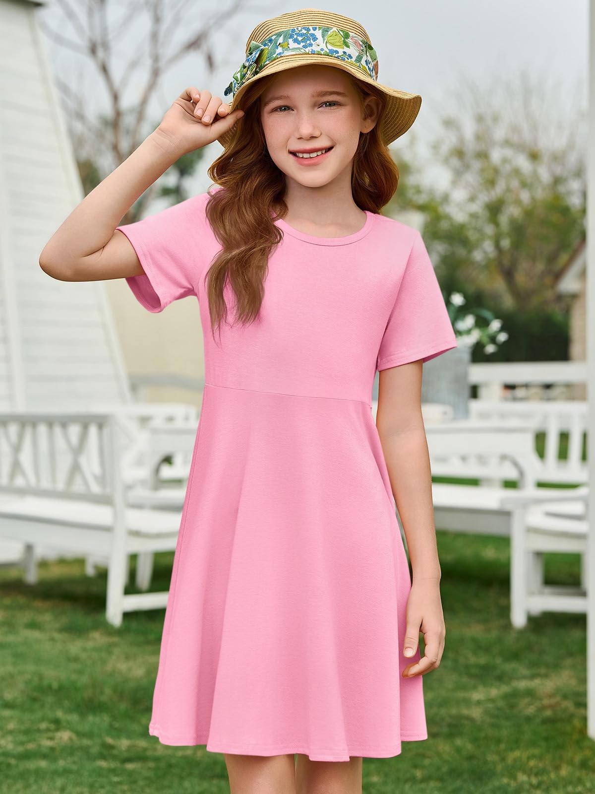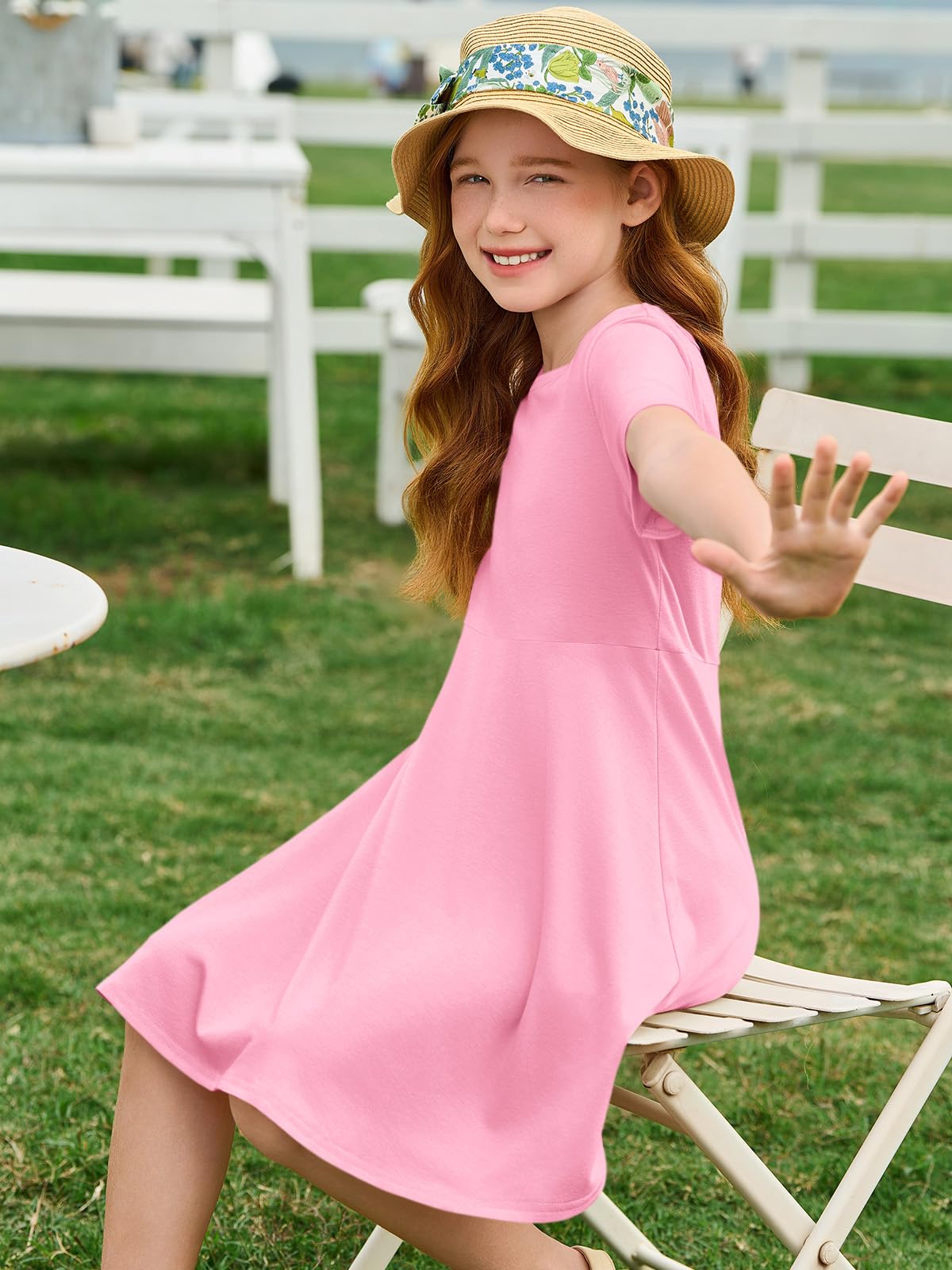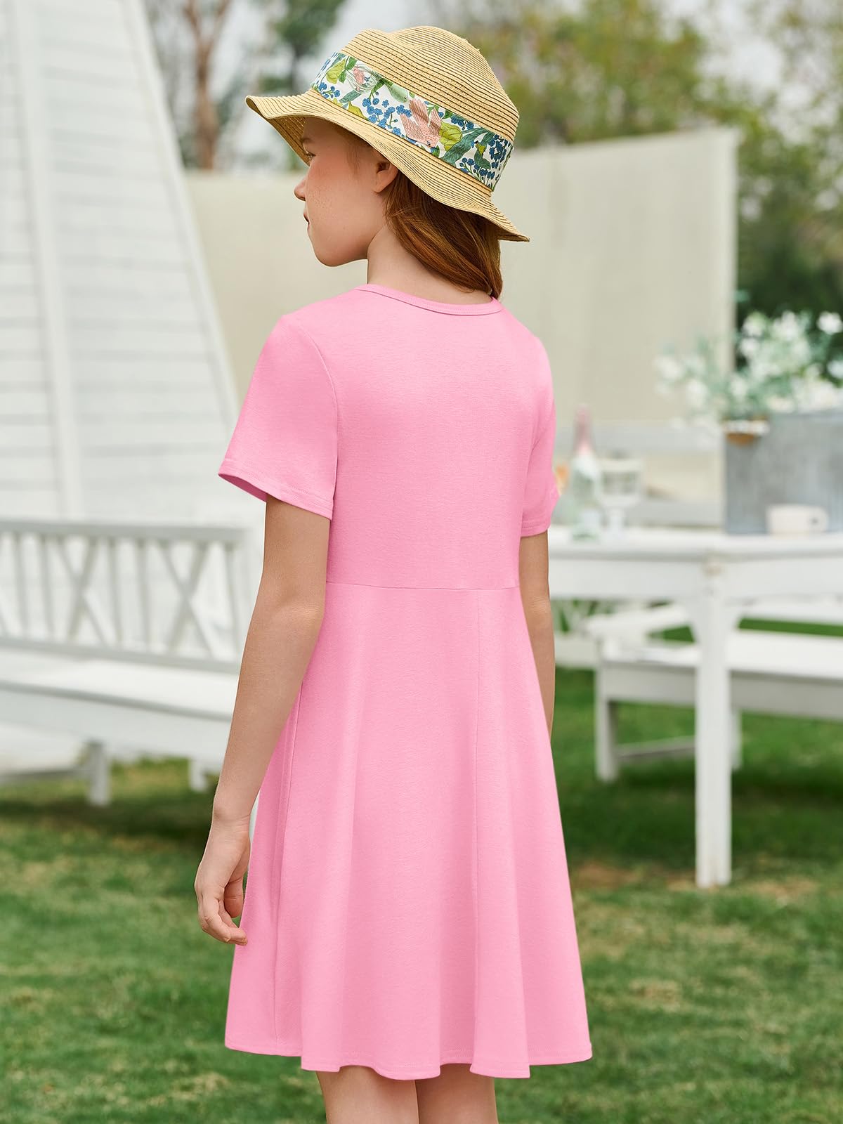 Design: Cute summer dress for girls, features crew neck, short sleeve, knee length, A-line design, swing and flowy hem adds more fairy feeling
