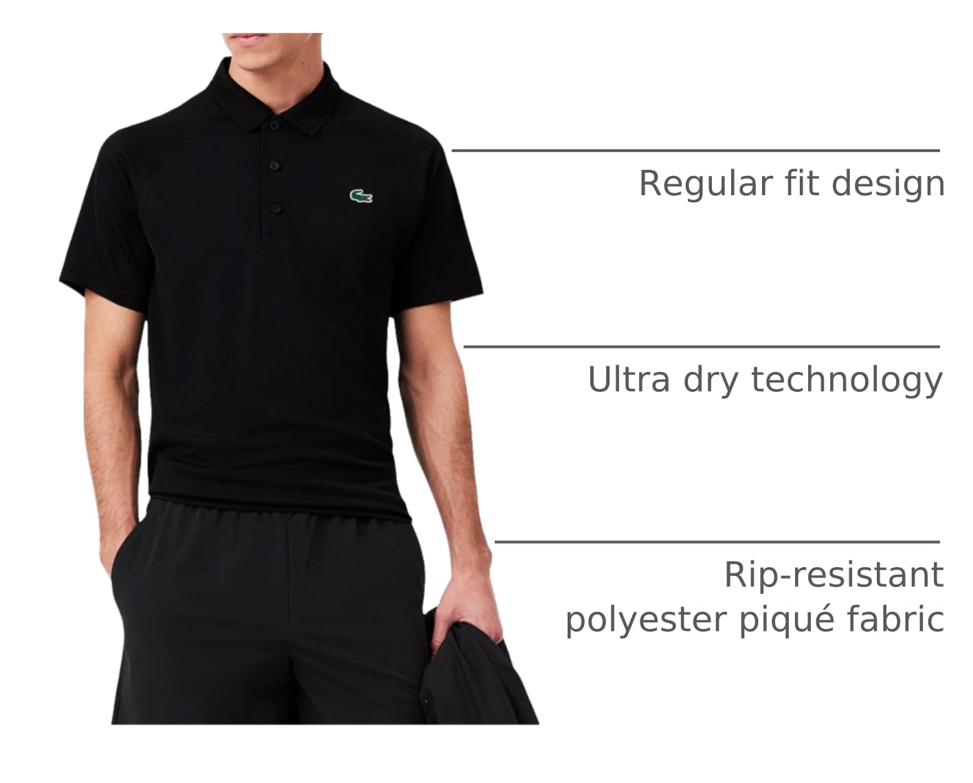 TECHNICAL: Rip-resistant polyester interlock piqué, designed for durability with a tightly woven structure to prevent tearing while maintaining comfort and a refined finish.