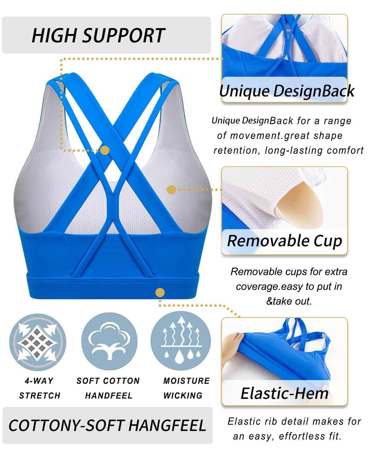 CRISS-CROSS BACK FULL COVERAGE DESIGN:Sexy back bringing more attention to the crisscross double strap back feature.Elastic Double Strap Bra features a sultry full coverage and double layer fabric for enough added support.Stretch Fit Sports Yoga Gym Bra Push up & Padded with removable pads for convenient adjustment, with a cotton-like meterial, soft and comfortable to wear.