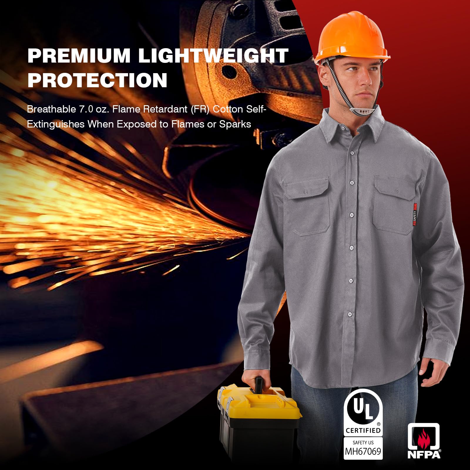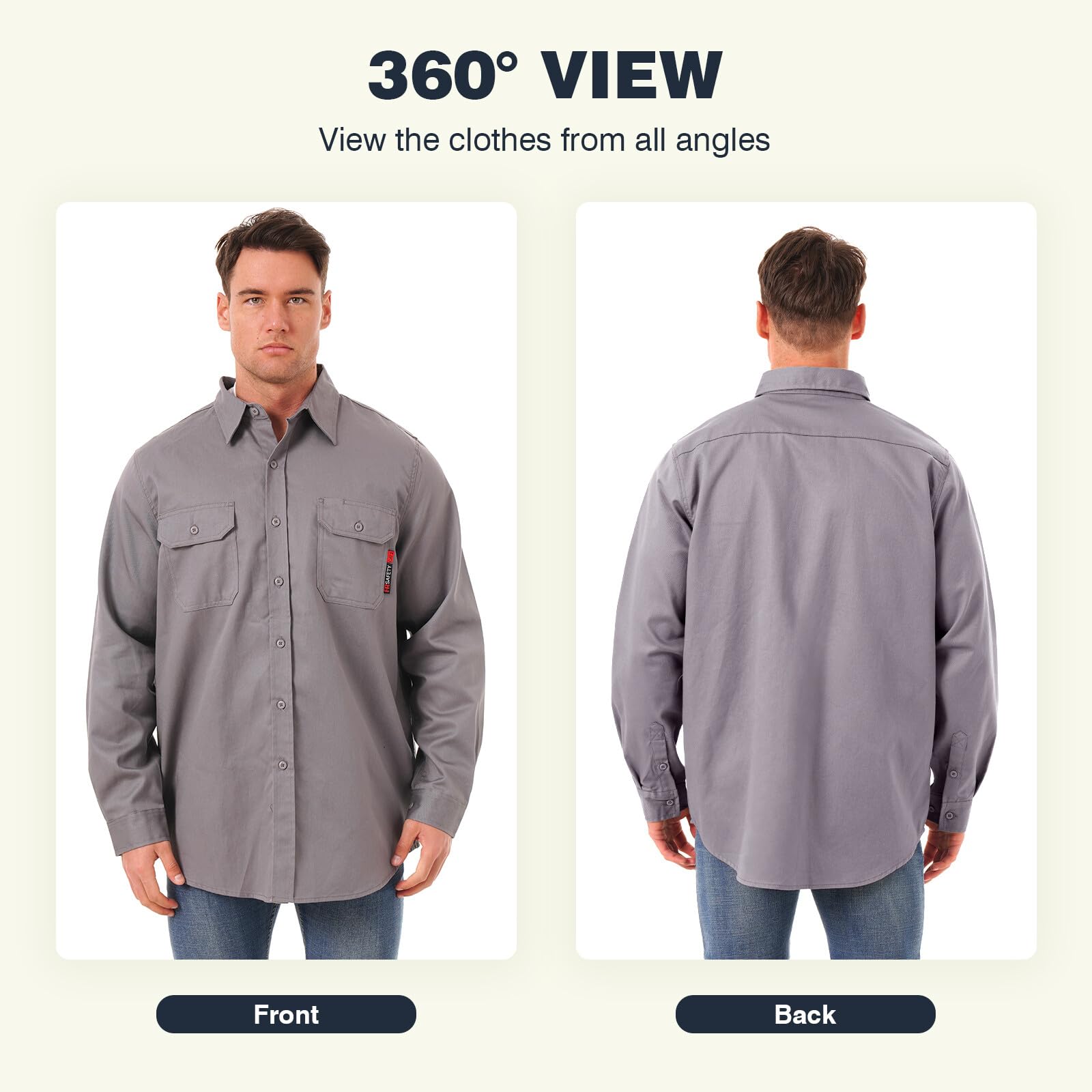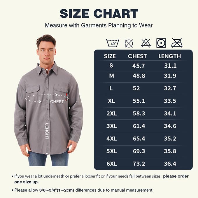 【Tips❗❗❗ Flame retardant shirts ≠ fireproof clothing】: Our flame retardant shirts are different in nature from fireproof clothing. Flame retardant clothing is added to the surface of the clothing flame retardant or the use of flame retardant fibers (such as aramid), when in contact with fire will slow down the burning speed or self-extinguishing from the fire, but can not completely prevent combustion, will still be charred, suitable for short-term sparks splash occasions.