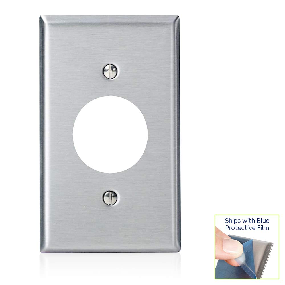 Product Description Familiar and functional, Leviton Traditional Wallplates are designed for use with Traditional Leviton devices. They represent styles and form factors that have stood the test of time. Their clean lines work in virtually any location, whether in new or retrofit construction, and they install quickly and easily. Leviton offers Traditional Wallplates in a vast array of colors and configurations. From the Manufacturer Familiar and functional, Leviton Traditional Wallplates are designed for use with Traditional Leviton devices. They represent styles and form factors that have stood the test of time. Their clean lines work in virtually any location, whether in new or retrofit construction, and they install quickly and easily. Leviton offers Traditional Wallplates in a vast array of colors and configurations. 1-Gang, Single 1.406-Inch Hole Device Receptacle Wallplate, Standard Size, Device Mount, Stainless Steel.