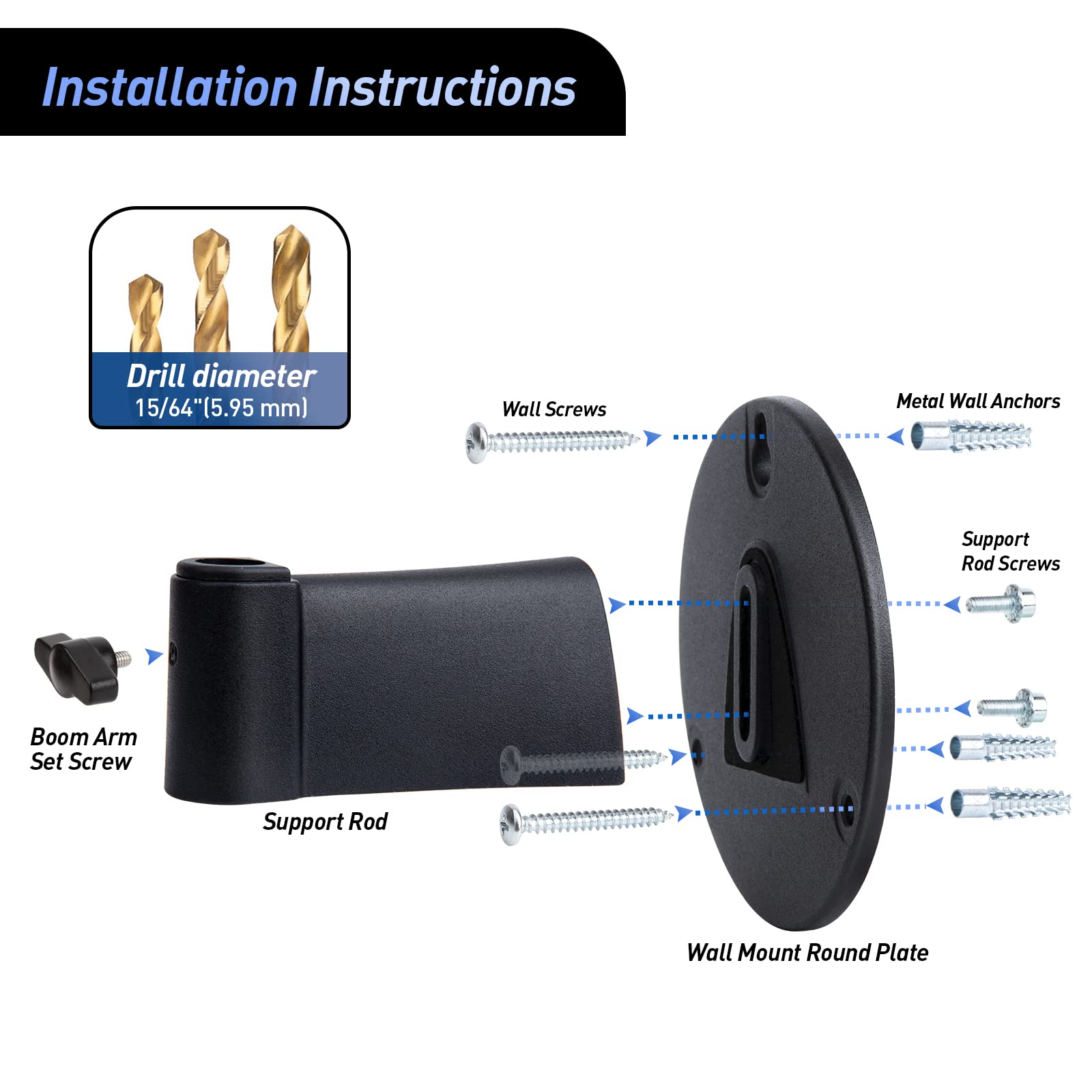 Metal Wall Anchors - Stronger than normal plastic wall anchors, prevents the product from falling off the wall during use and protects your Microphone and Mic Boom Arm.