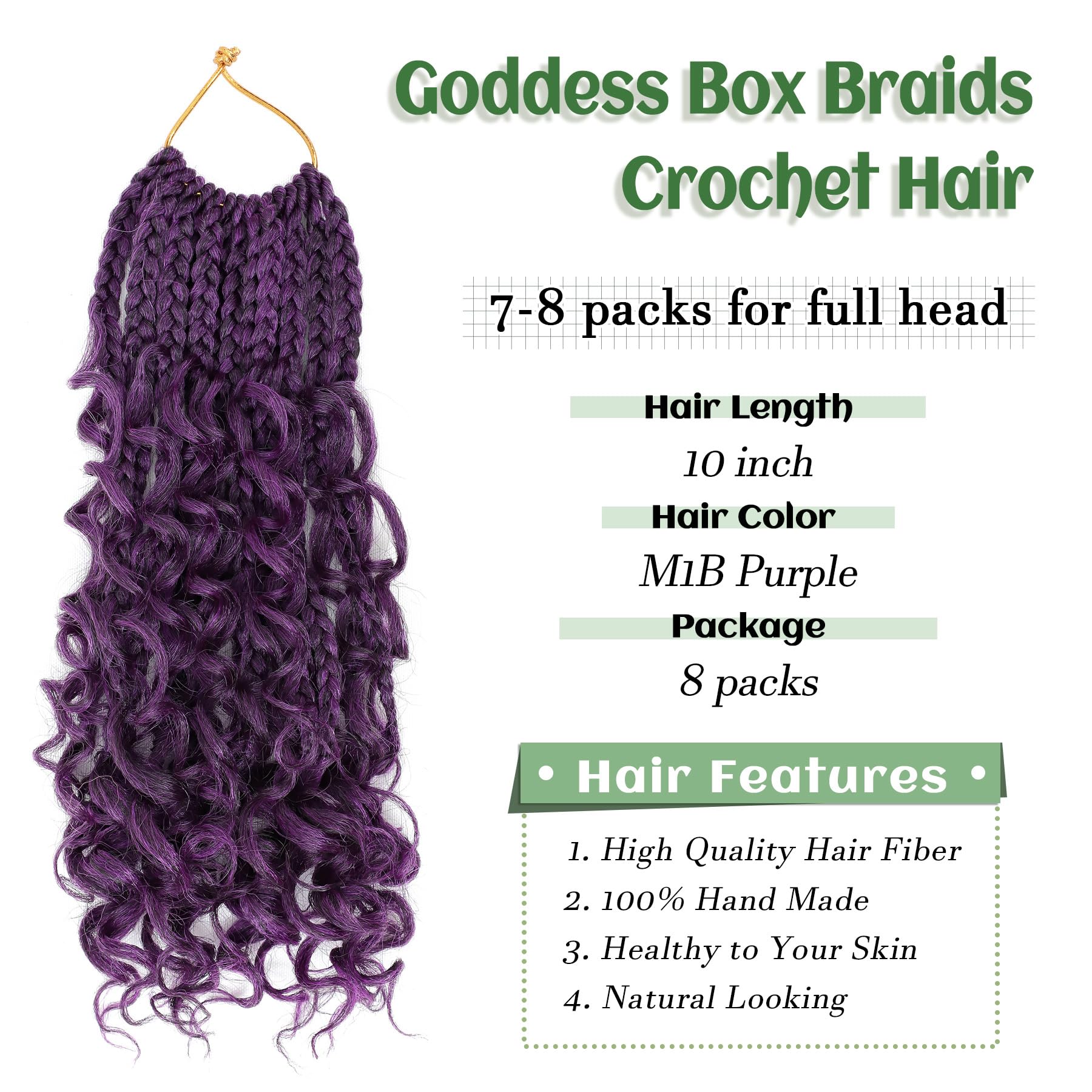 Hair Length and Package: goddess box braids crochet hair is 10 inch, 12 inch and 14 inch,18 inch and 24 inch,8-9 packs are enough to make a full head.More colors are available.
