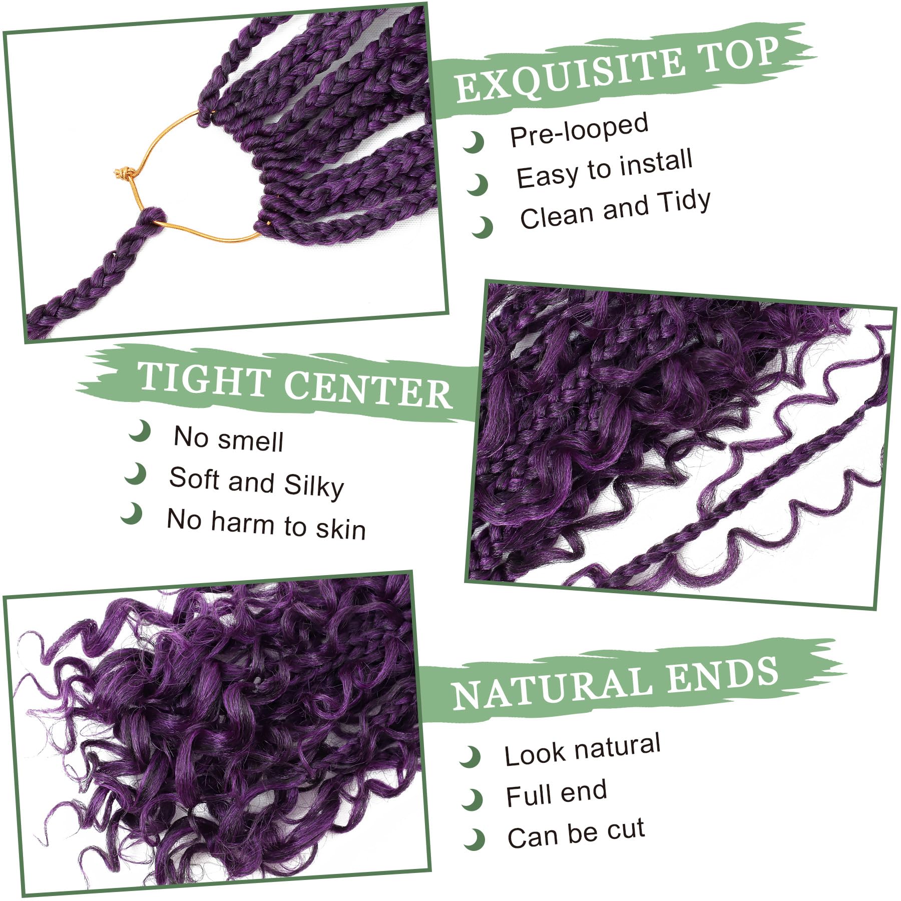 Easy to Install: This Boho Box Braids Crochet Hair is Pre-twisted and Pre-looped, Easy to Pull the Box Braids Through, No Need to Pry It Open a Bigger Hole, It Is Super Easy to Install, Save Your Much Time and Money.