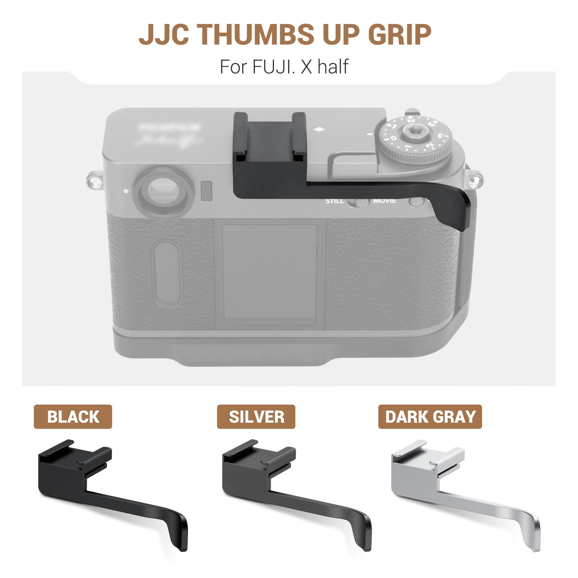 Built-in Cold Shoe Mount: The X Half thumb grip has an integrated cold shoe mount in the top, allowing you to install LED fill lights, microphones, and other accessories to meet the needs of multiple scenarios, suitable for vlogging, video shooting etc.(Not include any accessories)