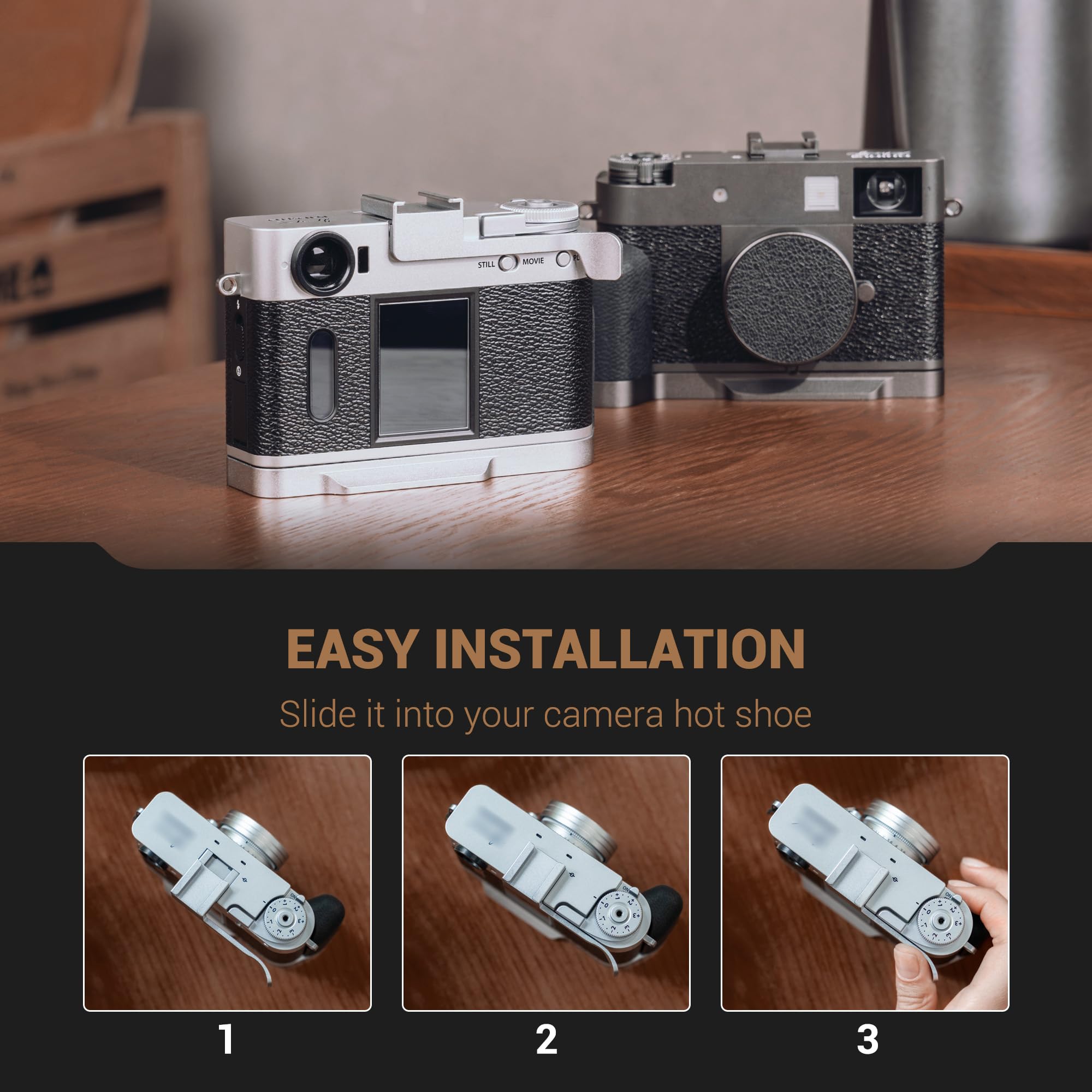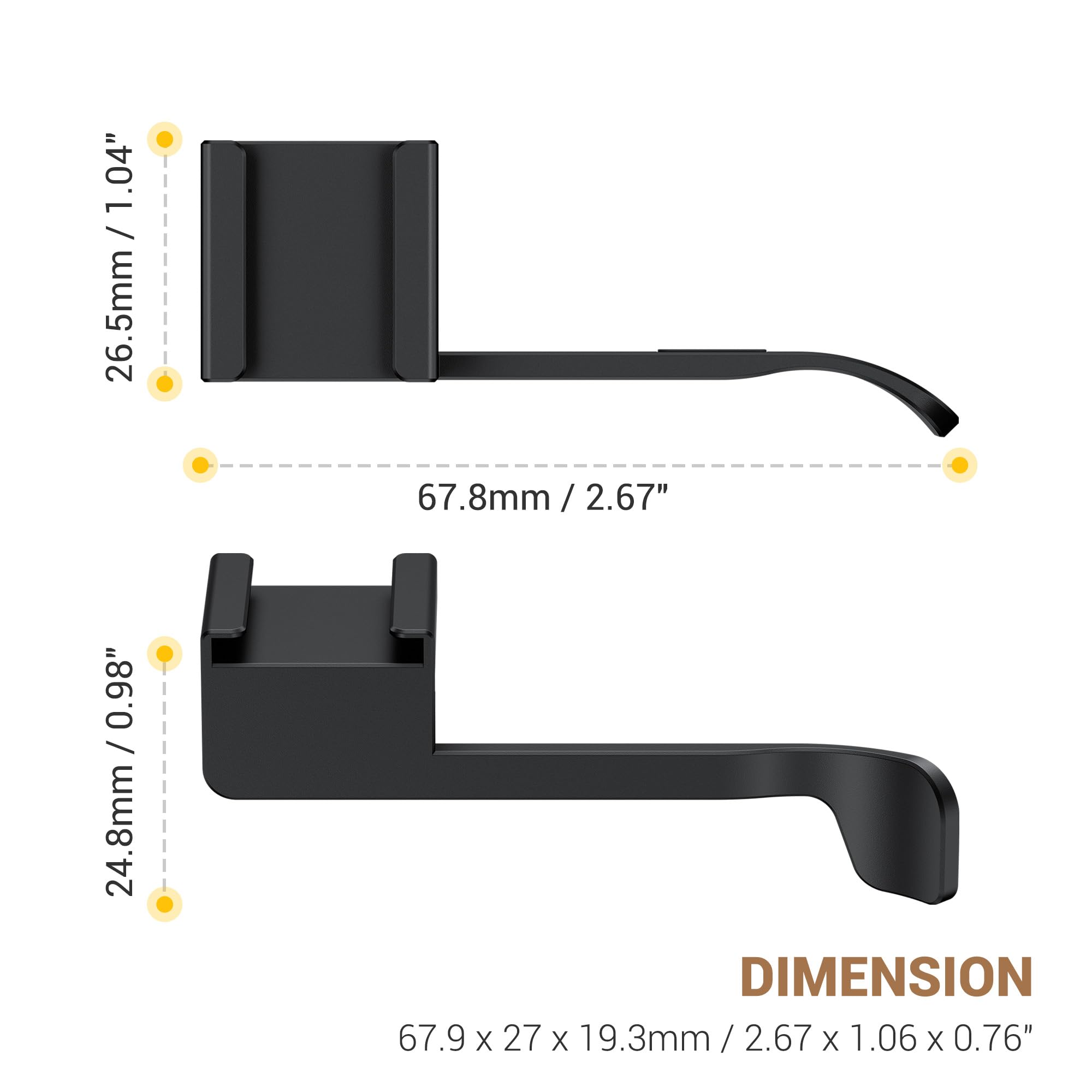 Comfortable & Durable: Made of aluminum alloy, which is sturdy and durable. With ergonomic design, the tail can provide support for the thumb after installation, making it more stable to hold the camera when shooting.