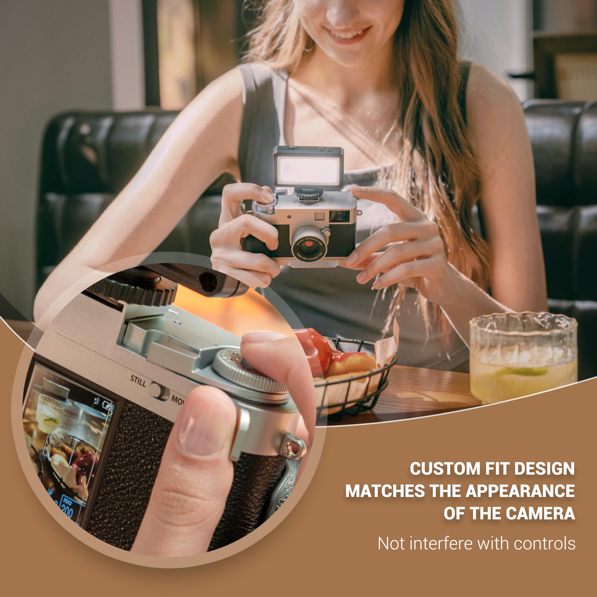 Customized Fit: The X Half grip is designed with a precise shape that fits the camera without affecting the use of other functions. After installing the thumb grip, it will not affect the use of the dial of the camera.