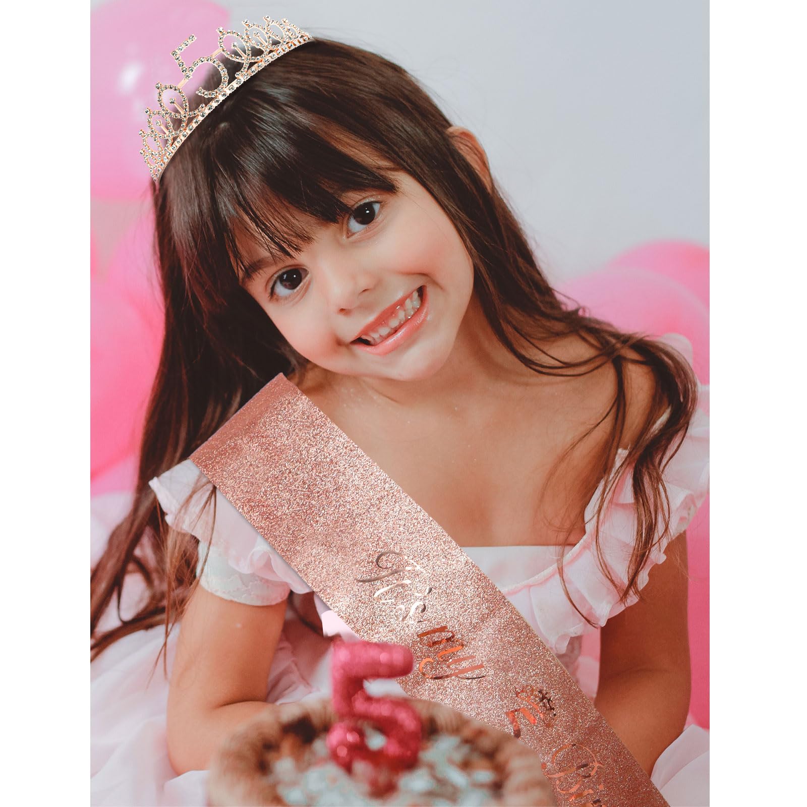 The Perfect 5th Birthday Decorations for Girls: "It's my 5th birthday" sash + rhinestone 5 tiara.