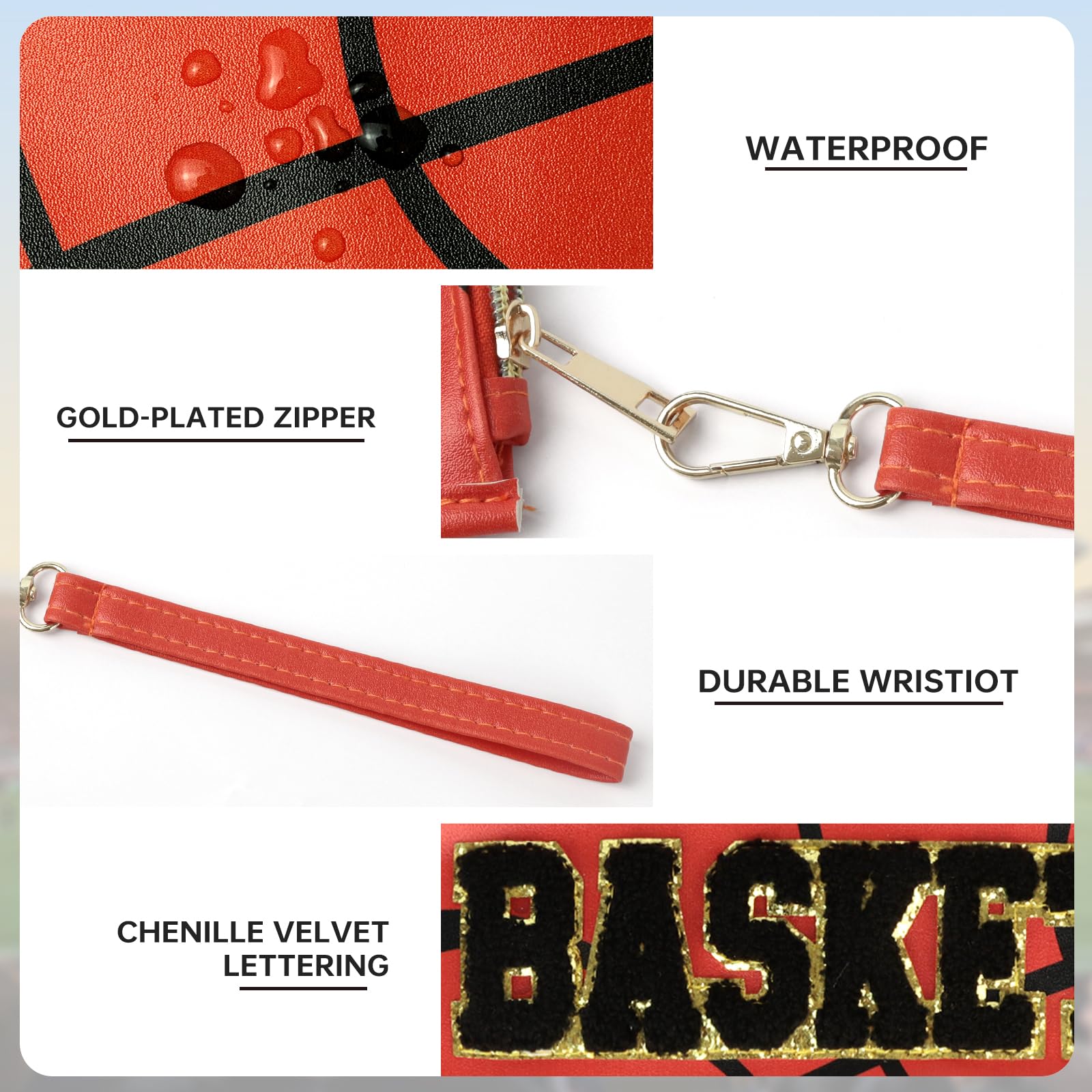 LIGHTWEIGHT & WATERPROOF & DURABLE: Made of nylon and PVC material, the basketball purse is waterproof and has a moderate size (11.6 inches x 8.2 inches), which effectively protects your items from moisture, while the material is tough and durable, easy to clean and stays in good condition even after a long time of use.