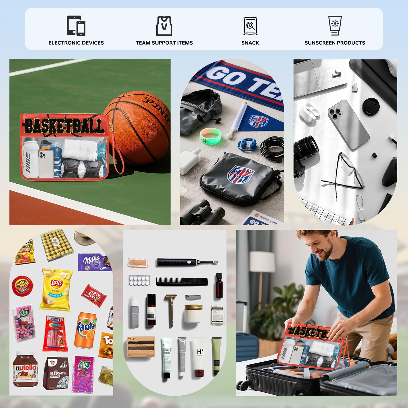 MULTIPURPOSE: With its waterproof, fashionable and practical design, the transparent basketball gifts makeup bag is suitable for sports games, airport security, outdoor activities, music festivals, shopping, daily travel, travel and as a team gift and other occasions.