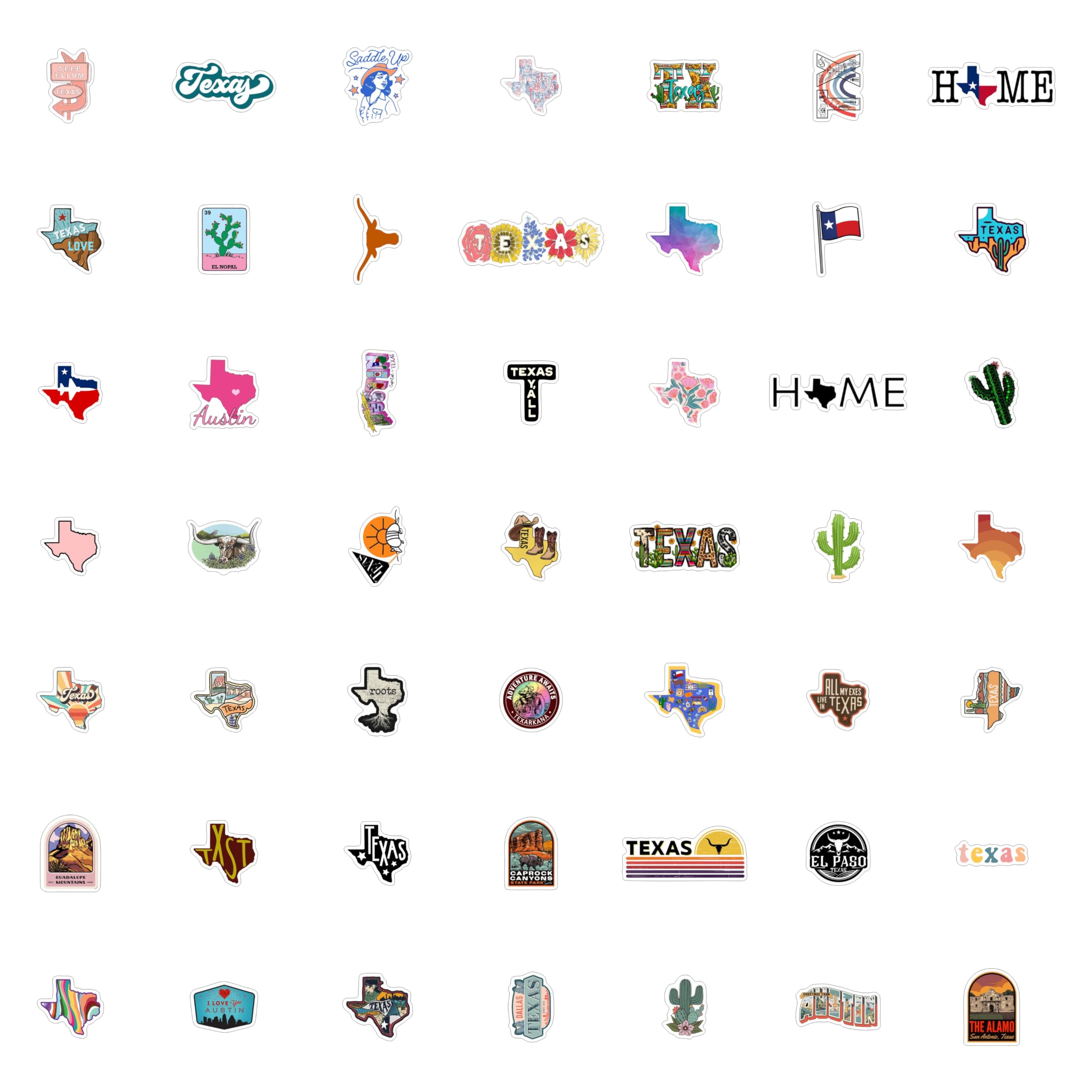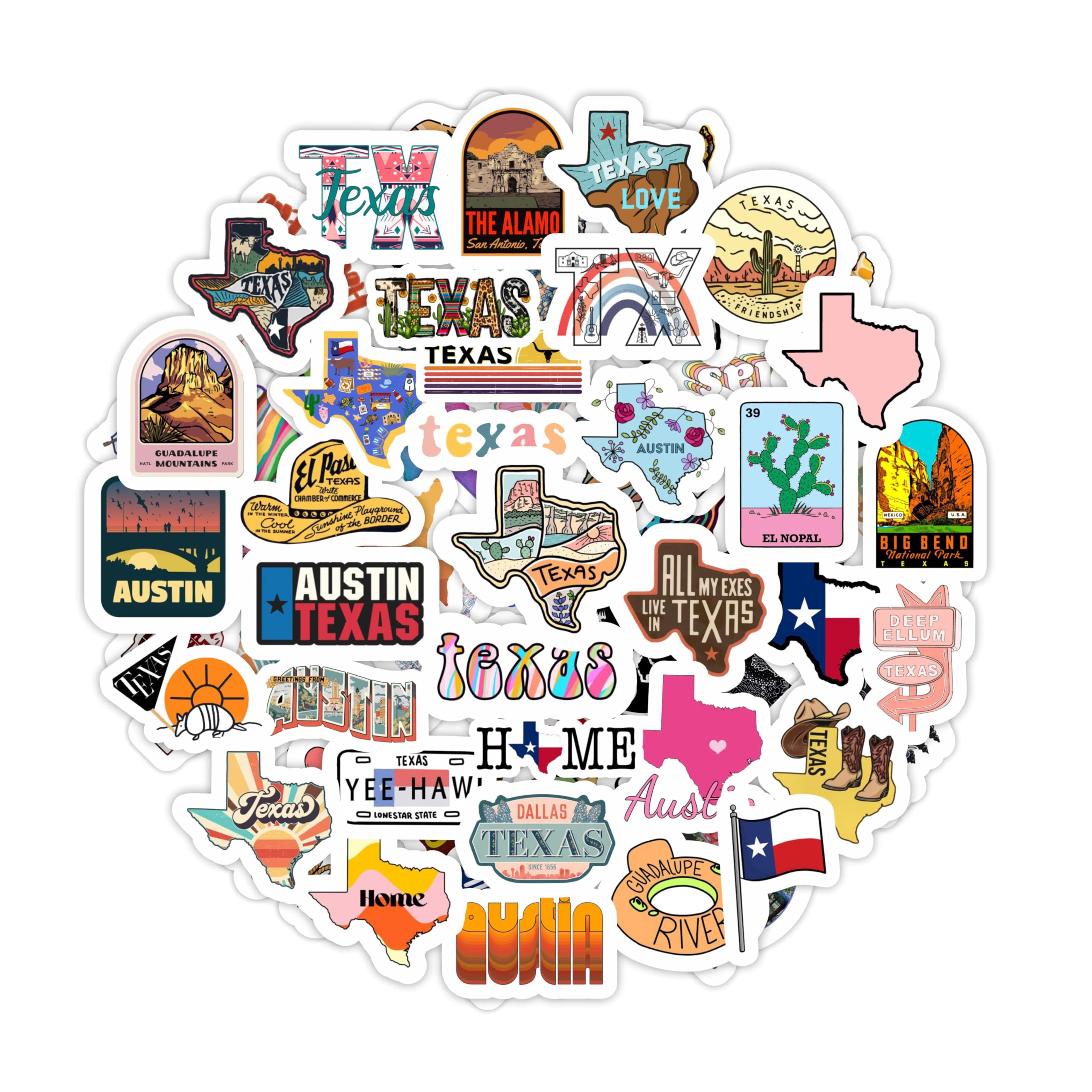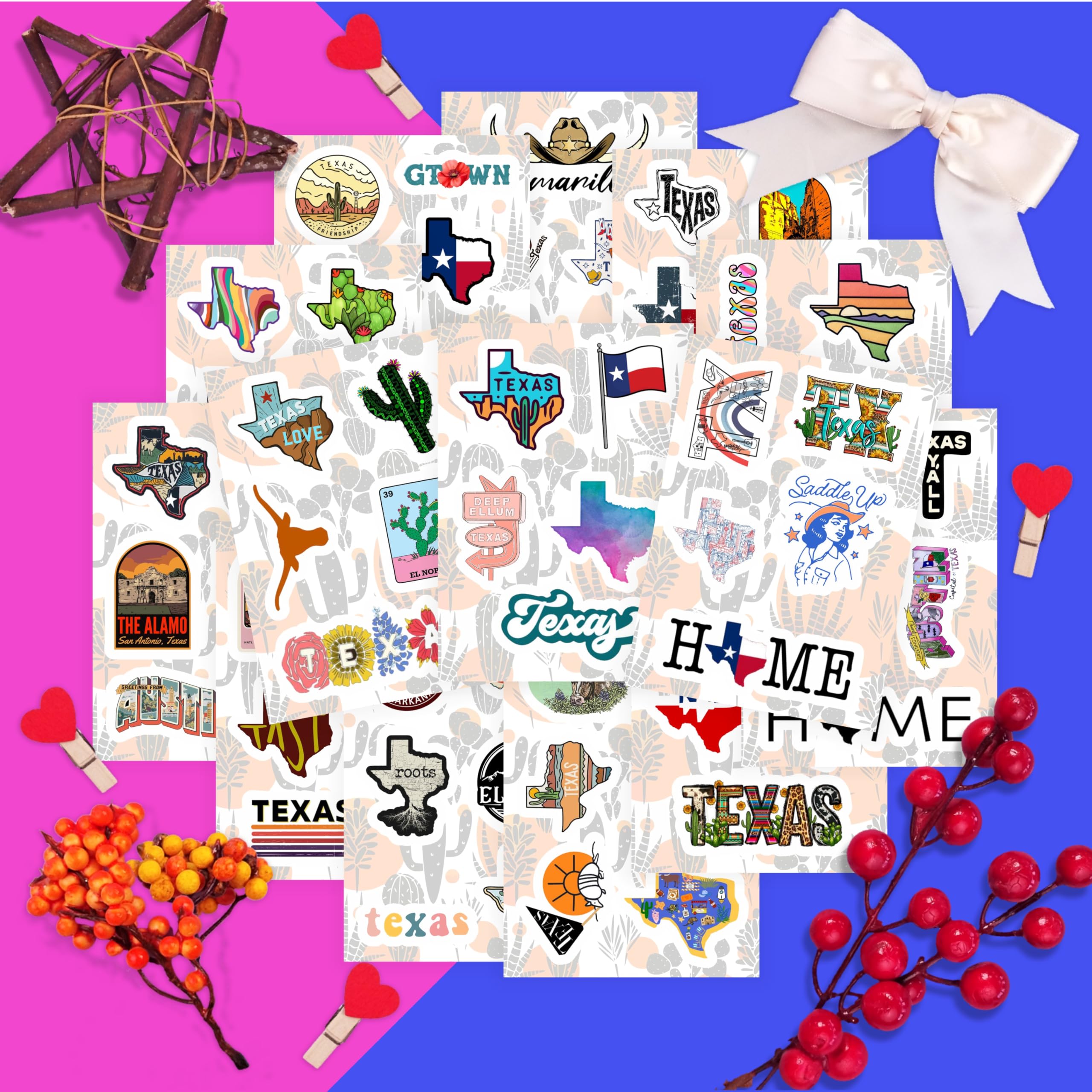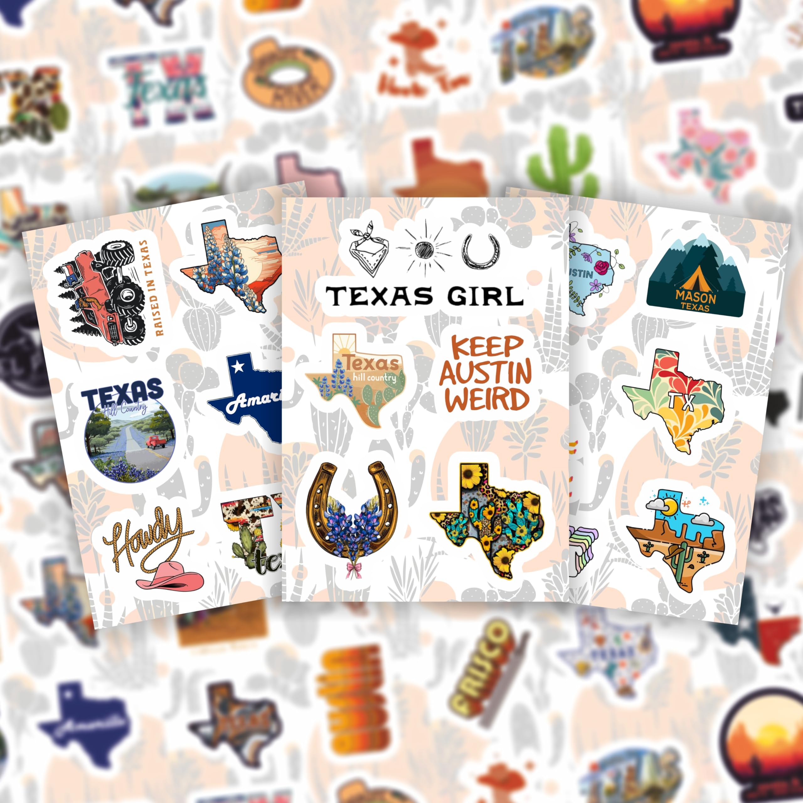 STICKER SHEETS - Texas sticker pack contains several sheets. Sticker sheets are less likely to get damaged or bent compared to loose, cut-out stickers.