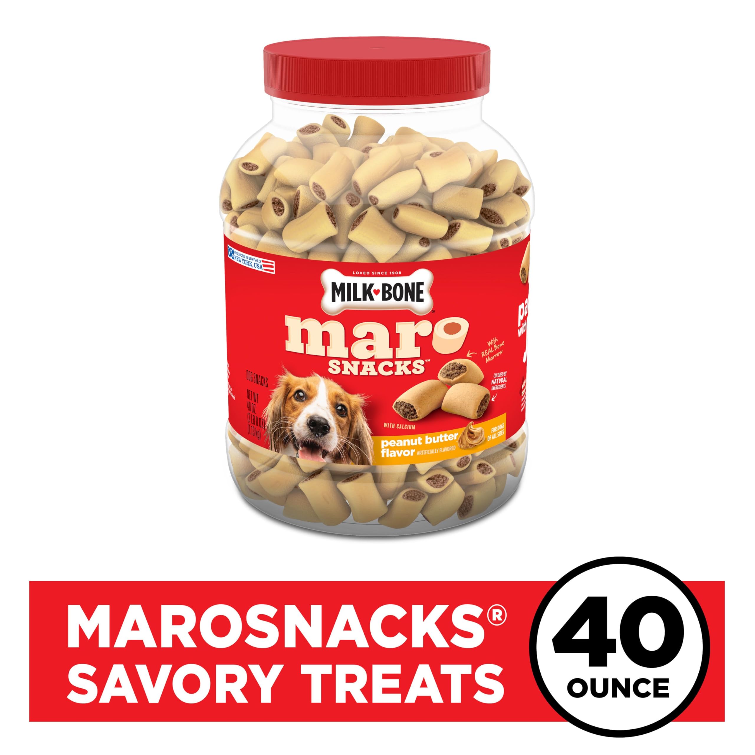 Contains one (1) 40-ounce canister of Milk-Bone MaroSnacks Peanut Butter Flavor dog treats