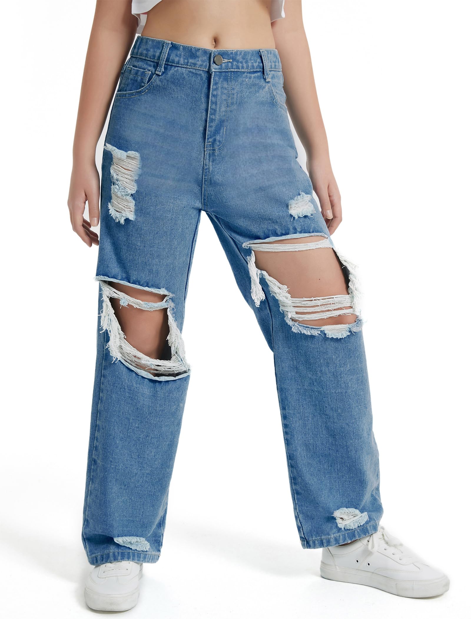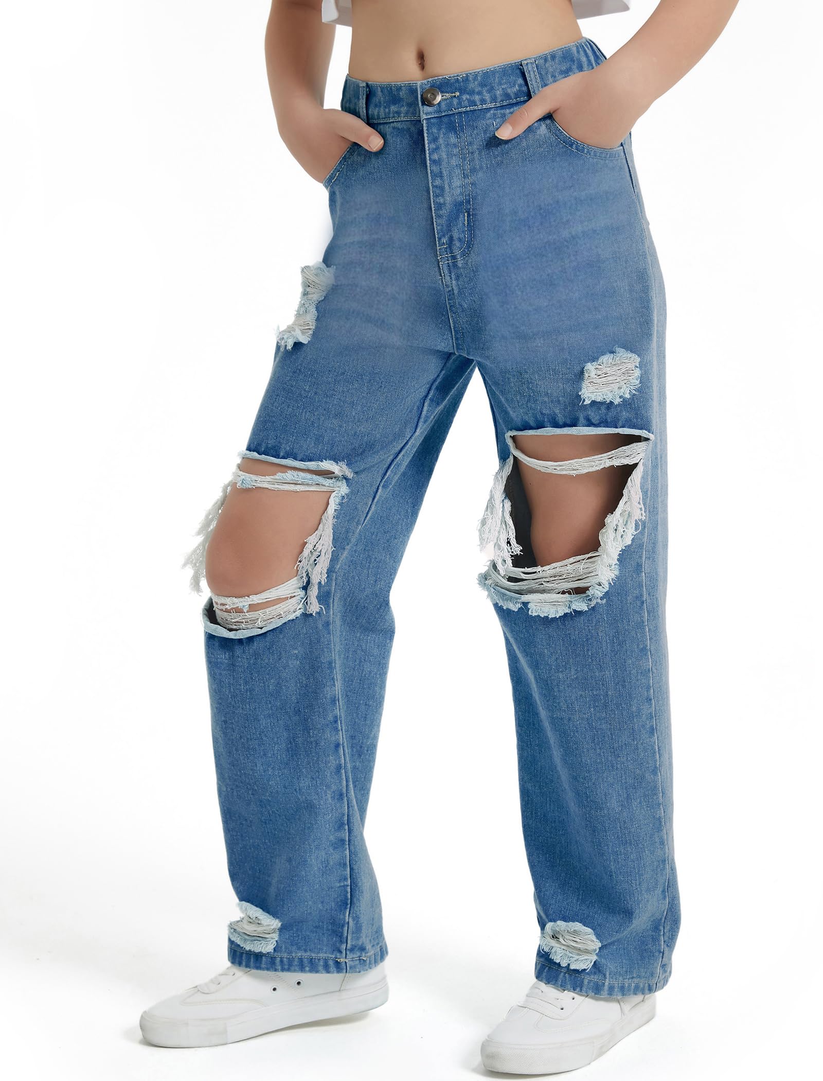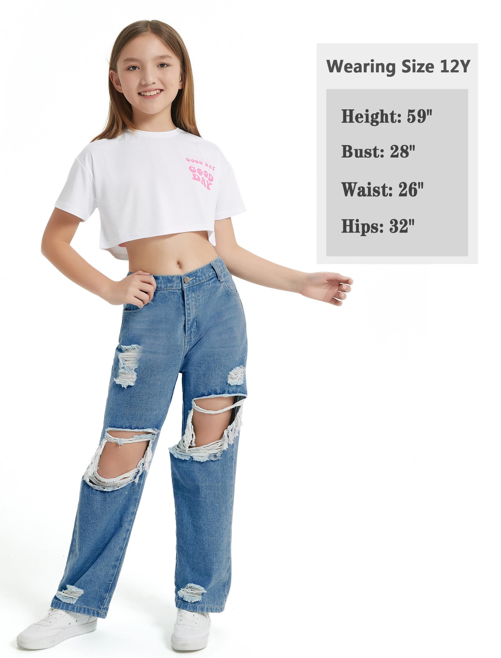 Various Match: Girls ripped wide leg jeans are very versatile, allowing you to create a variety of stylish outfits. Pair them with t shirts, tank, shirts, hoodies, jumpers, sweatshirts, jackets coats or sports shoes for a casual cool girl look!