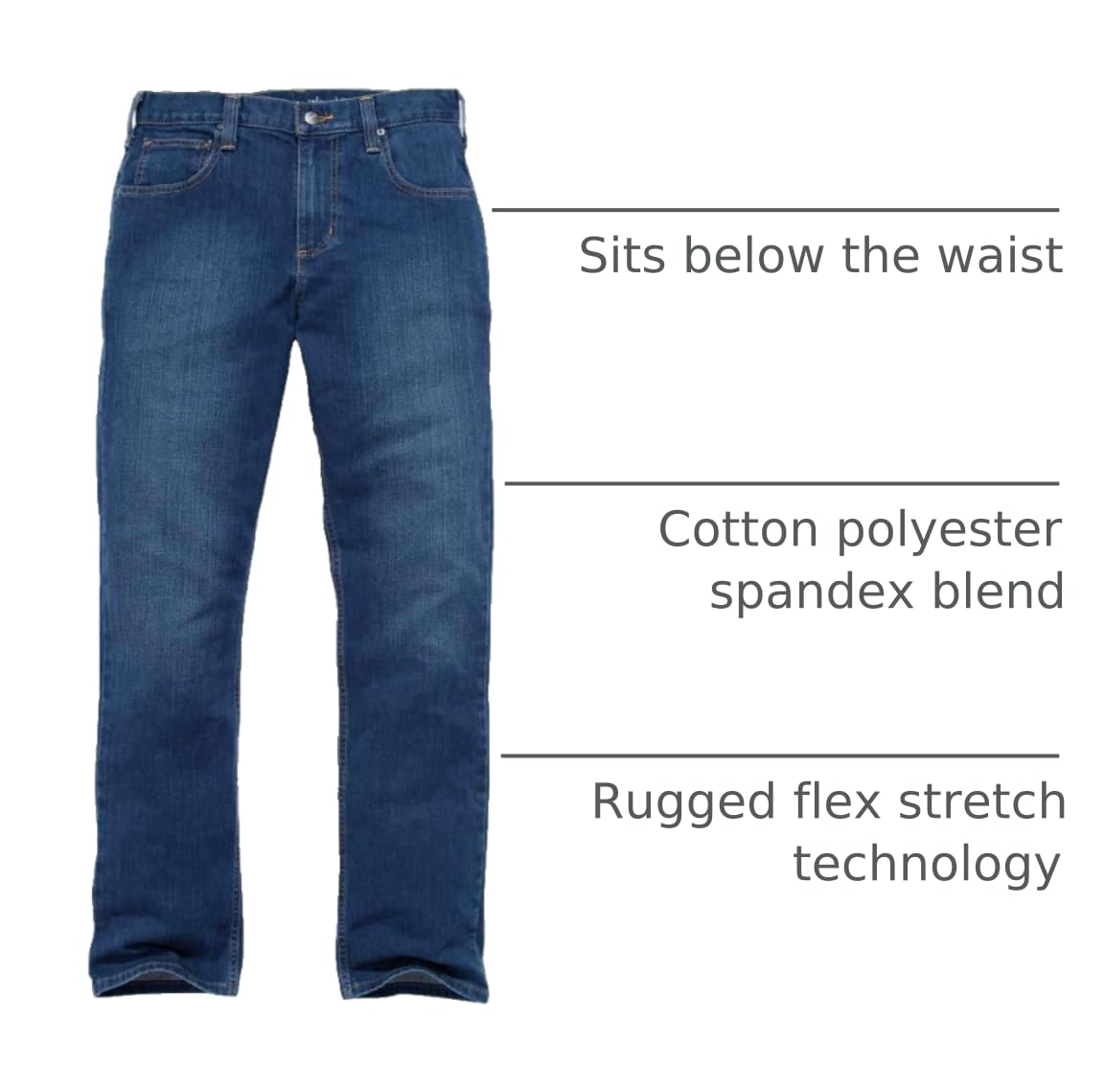 Description Double shifts or 14-hour days. These men's jeans can stand up to almost anything. They're made of our most durable, abrasion-resistant denim with enough stretch for easy movement. The straight-leg jeans are cut for a relaxed fit, with extra room in the seat and thigh.
