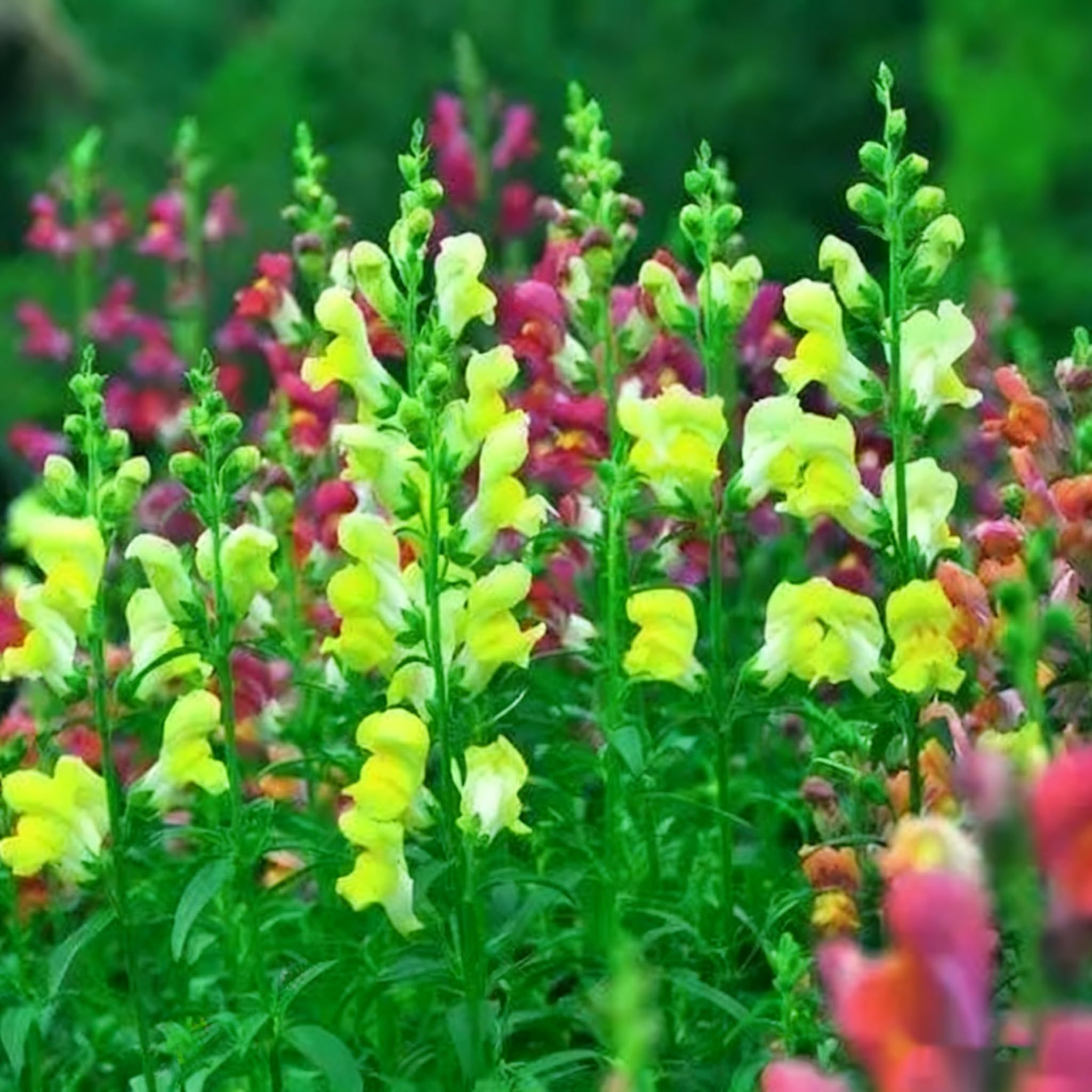 Charming Snapdragon Spikes: Cultivate these 300 Snapdragon seeds to enjoy their classic, dragon-shaped blooms on upright spikes. Available in a mix of bright colors, these flowers add vertical interest and a playful, cottage-garden charm to any planting