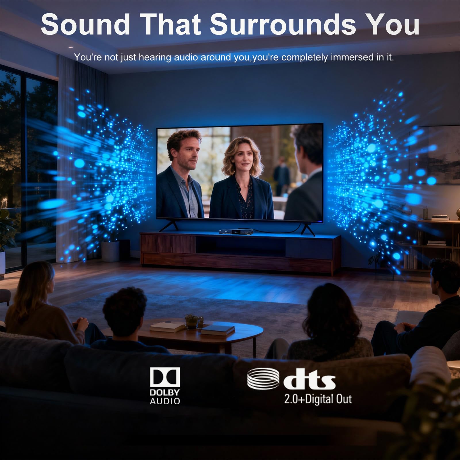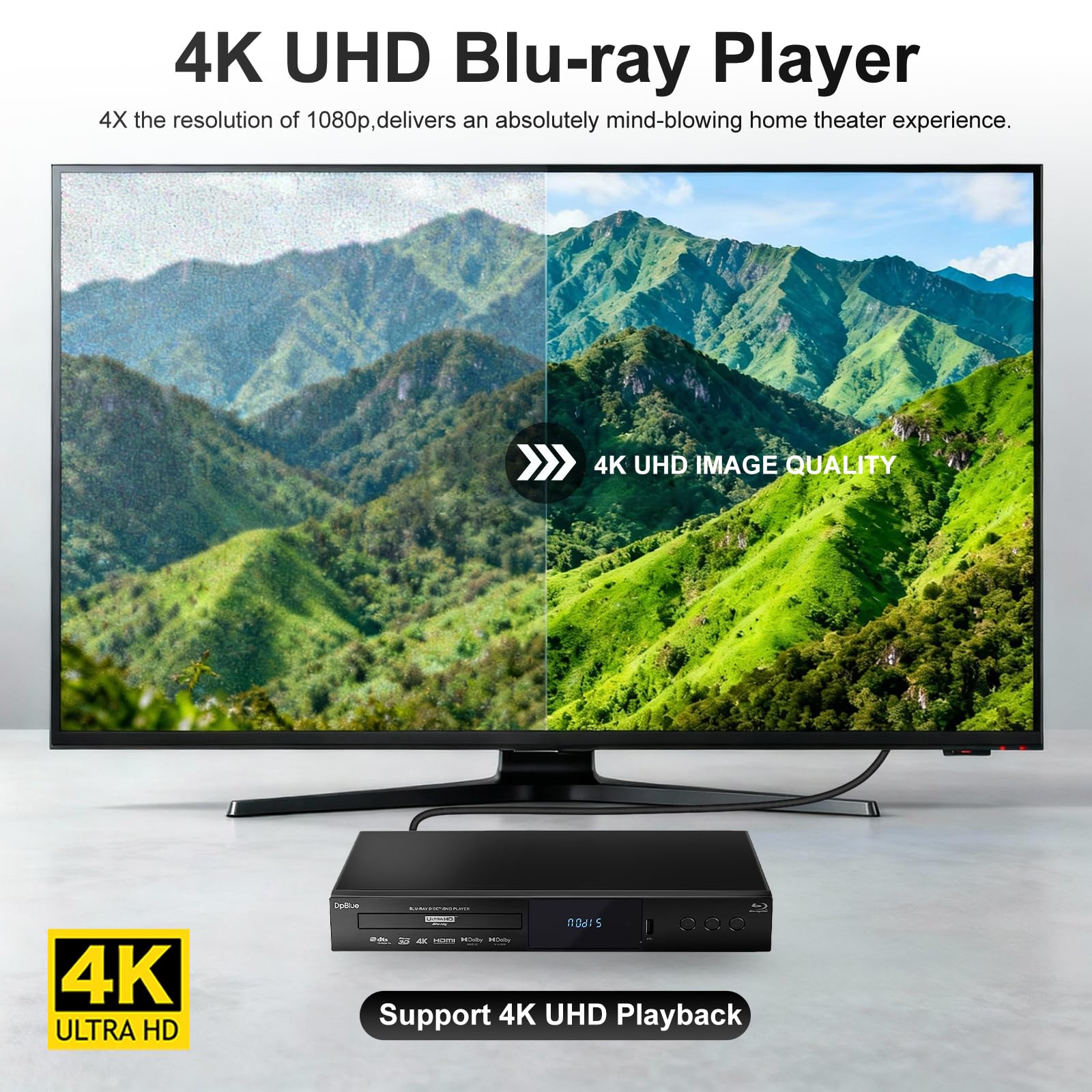 【4K UHD BLU-RAY PLAYER】Experience true-to-life picture quality with native 4K UHD Blu-ray disc playback, delivering 4x the resolution of Full HD for incredibly sharp and detailed images.