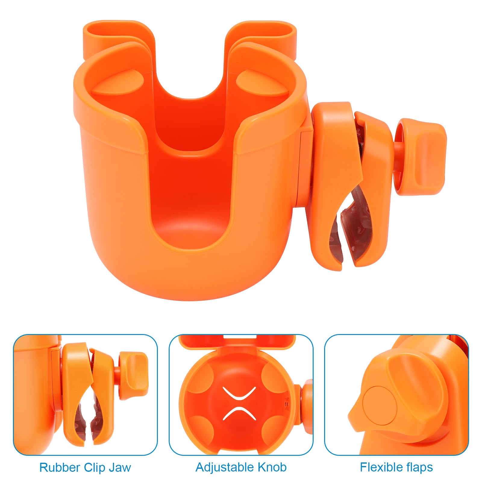 Easy to Use: This stroller cup holder attachment is made of durable materials. The ABS plastic and slip resistant rubber ensure the bottle keep steady even on the rough road. It is a "clip on" cup holder, you just need to clamp on anywhere you like. Easy to install or remove.