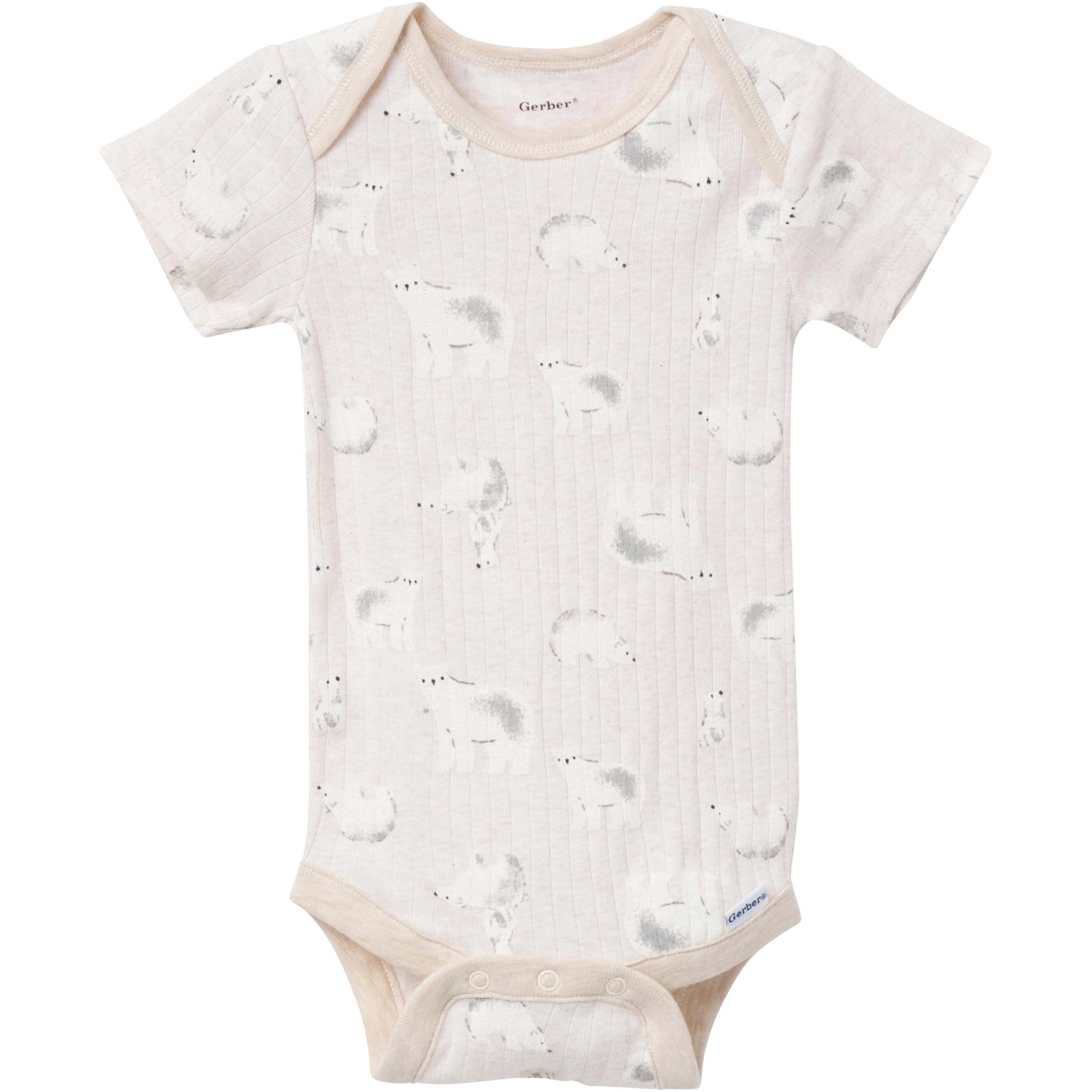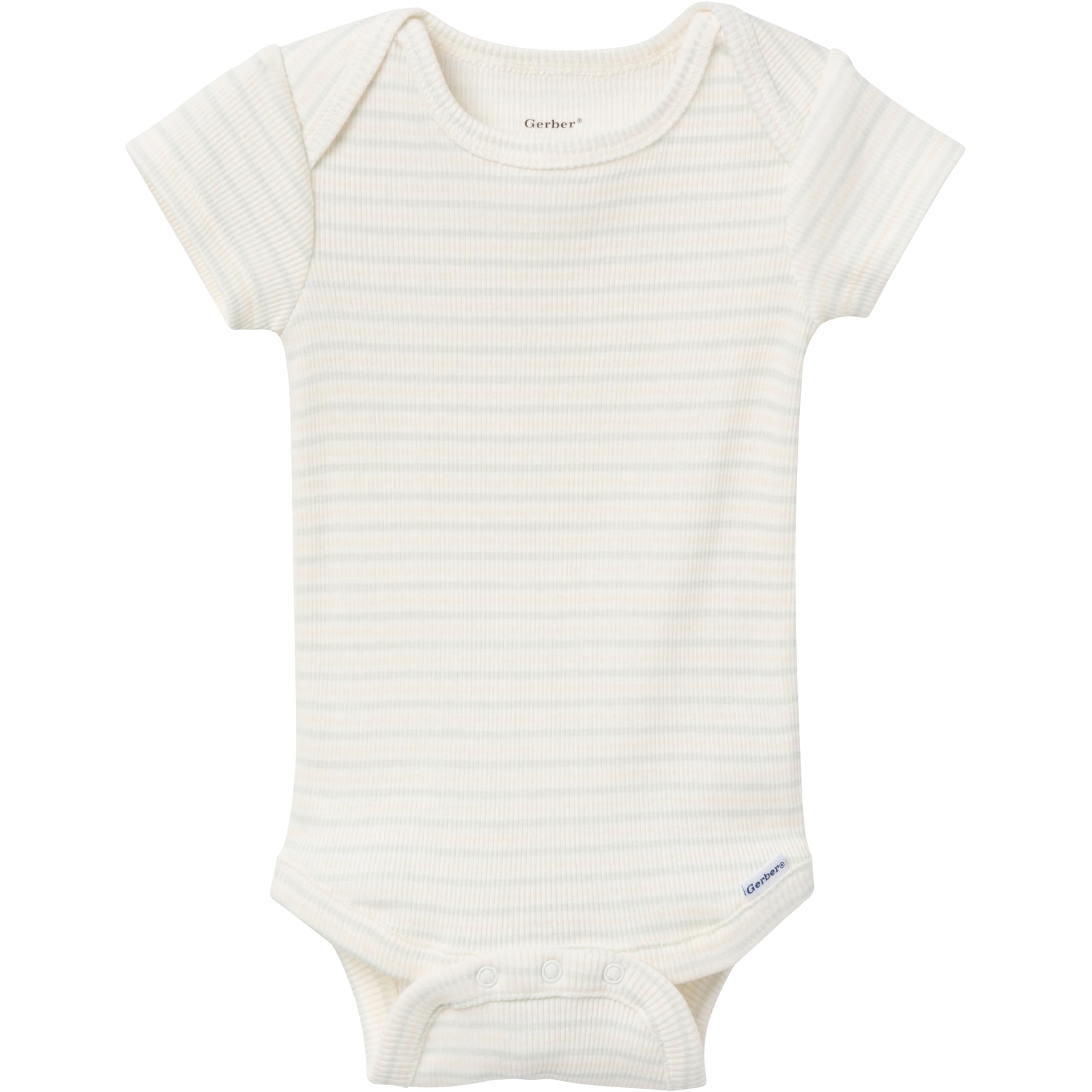 Description Baby Onesies bodysuits are truly a must-have! These adorable, assorted Onesies bodysuits are made with a soft cotton fabric that’s perfectly comfortable against baby’s delicate skin. Baby will love how breathable this material is! We had this product independently certified with STANDARD 100 by OEKO-TEX® so that you don’t have to worry about harmful substances in your baby’s clothing. This pack includes four bodysuits. These Onesies bodysuits are an excellent choice for any baby boy. These bodysuits are perfect to mix and match to create endless outfit options! Pair them with baby pants, baby shorts, or cute baby socks to create fun and comfortable outfits your baby boy is sure to love! The precious assortment of colors, patterns, and artwork make these bodysuits a fashionable choice suitable for everyday wear. These outfits are sure to be a favorite. These classic baby clothes feature lap shoulder necklines that make wardrobe changes easier than ever. The necklines allow the garment to slip over baby’s head in total comfort. They also feature bottom snap enclosures that are conveniently positioned higher in front to quicken diaper changes. These baby boy Onesies bodysuits come in a wide range of sizes to fit babies through all of their developmental milestones. Bodysuits are an excellent choice for all seasons and any time of day. In the warm months they make adorable outfits all on their own and increase baby’s mobility as baby’s legs and arms are free to move about as they please. In the cooler months, they may be worn under baby clothes during the day and under baby pajamas or baby gowns during the night for an extra layer of warmth. Gerber Onesies bodysuits are machine washable and machine dryable. No parent or caretaker has time to fuss with handwashing clothing, so Gerber takes special care to make sure these bodysuits may be washed and dried over and over without wear and tear. Onesies bodysuits make stylish and practical gifts that are sure to complement and enhance any baby’s wardrobe. Adorable and affordable, these bodysuits truly are high-quality. Gerber offers products parents can trust for baby.