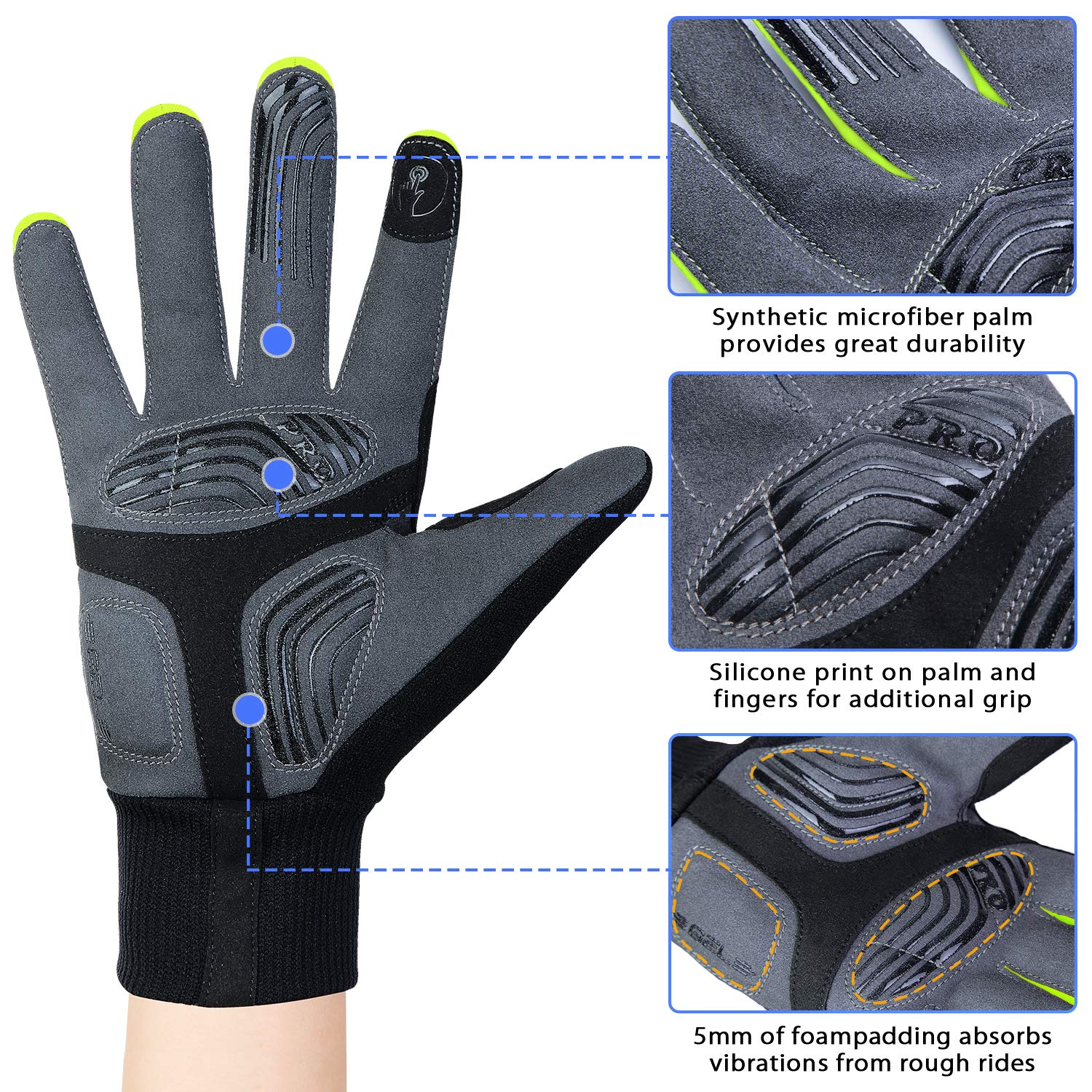 TOUCH SCREEN CAPABILITY: These bicycle gloves conveniently feature close fit and touchscreen sensitive fingertips. Meaning that you can take calls and manage your smart devices without having to remove your warm gloves. These workout gloves are suitable for many other outdoor activities besides cycling, including running, hiking, climbing or driving.