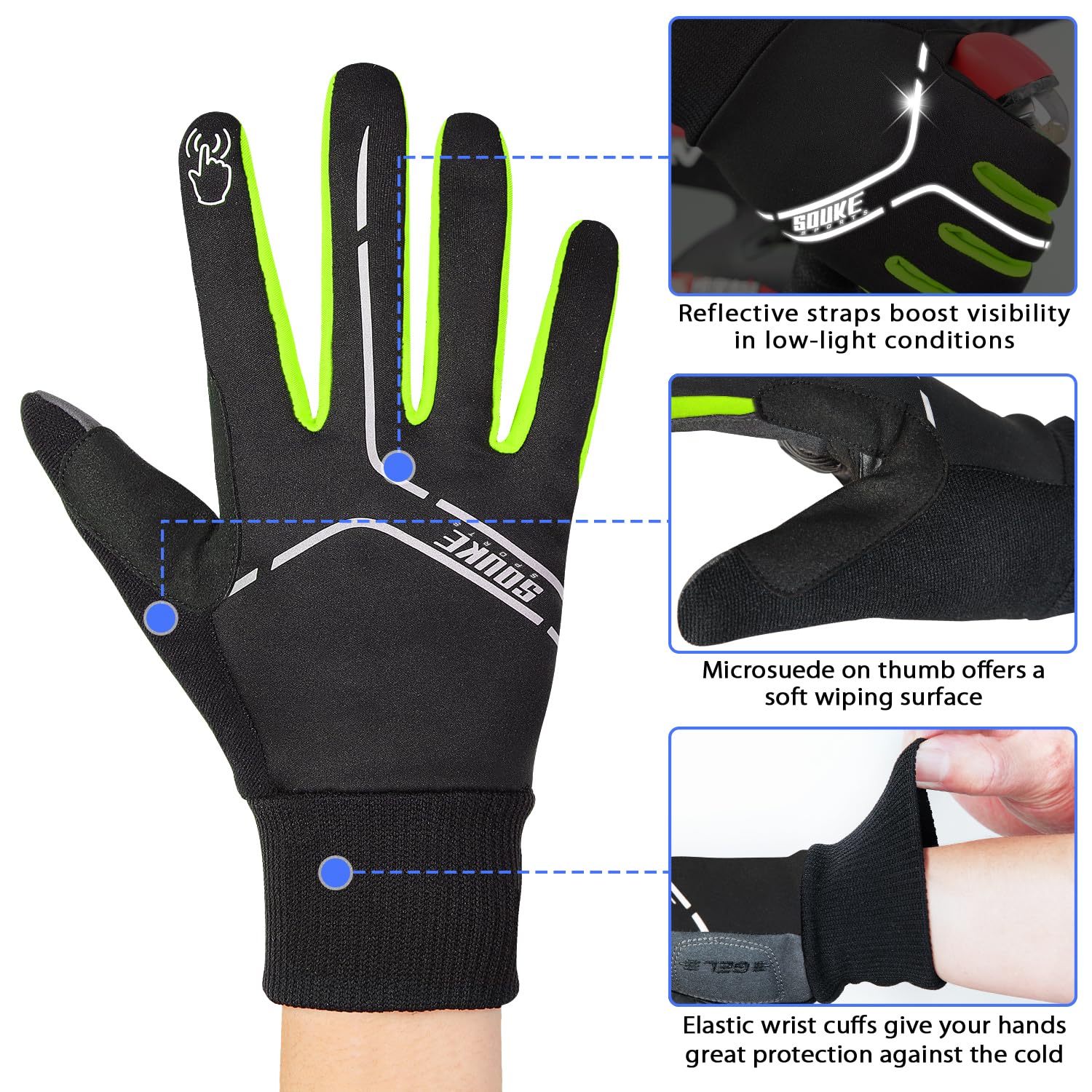 GREAT INSULATION AND WATER RESISTANCE: Souke lightweight winter cycling gloves are made from a water-resistant and windproof outer shell and lined with thermal insulated fleece which help ensuer that hands remain warm and dry in light rainfall or snowy conditions. The extended knitted wrist cuffs provide better coverage and more warmth without excessive bulk.