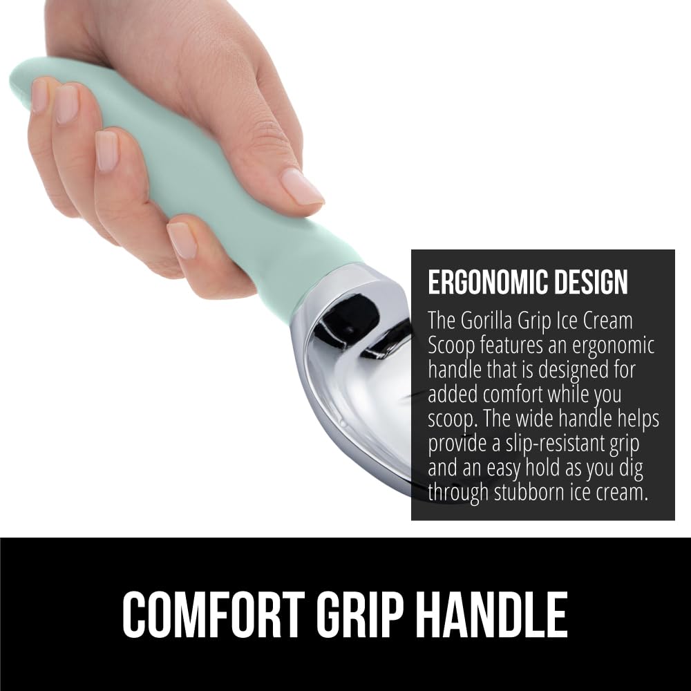 GORILLA GRIP BPA-Free Heavy Duty Ice Cream Scoop, Comfortable Ergonomic Handle, Professional Grade Scooper for Perfect Round Scoops, Spoon Frozen Hard Gelato, Sorbet, Cookie Dough, Kitchen Tool, Mint