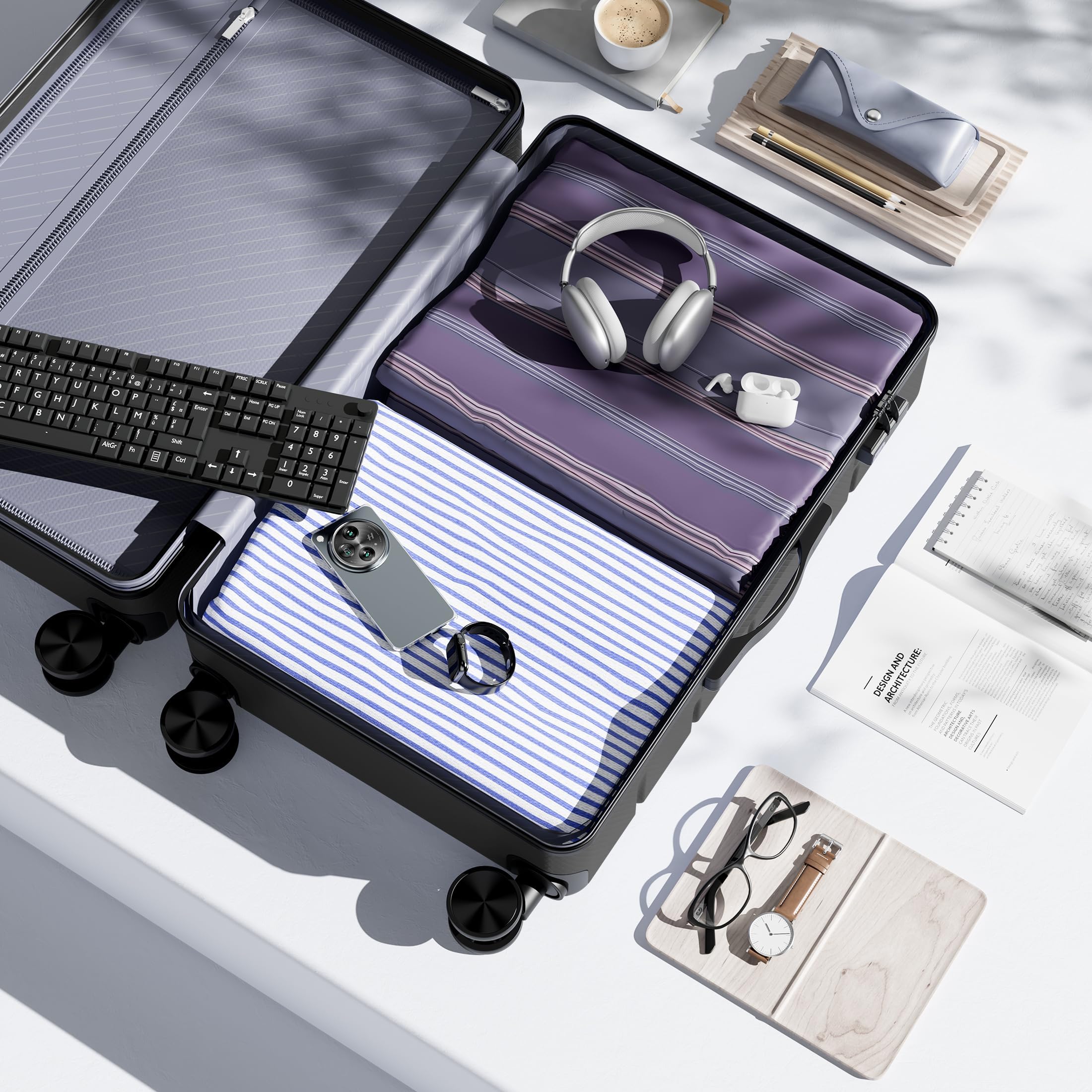 TSA-Approved Lock & Stylish Design: Features a TSA-certified combination lock for enhanced security and worry-free inspections. The sleek textured surface with horizontal stripes adds a modern, stylish touch while minimizing scratches.