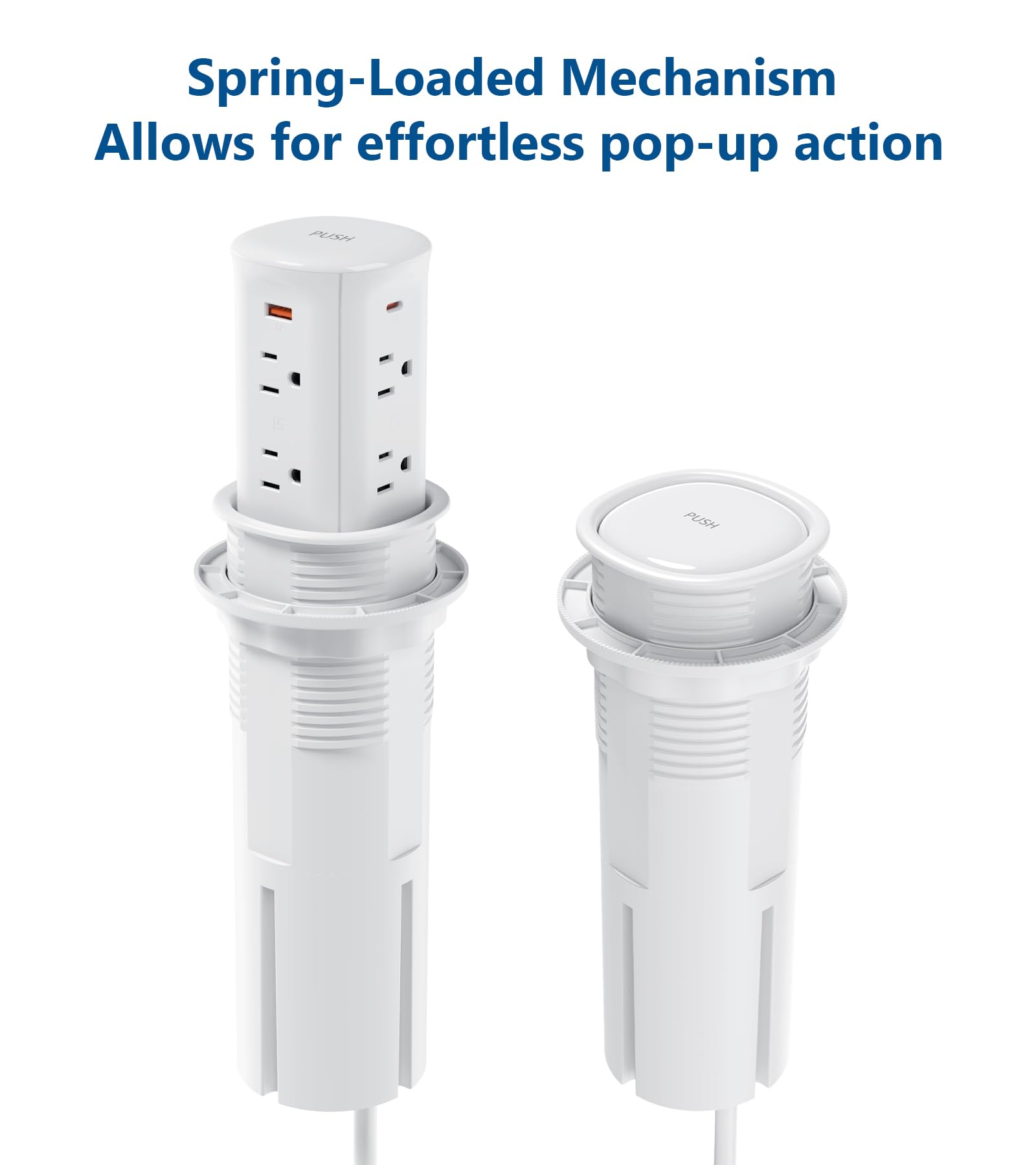 【Easy Installation】Jgstkcity pop up outlet fits a 3-1/8 inch (80mm) hole size,and has a built-in spring-loaded pop-up mechanism, simply press in the top to pop the unit up for use.Cut a 3-1/8 inch (80mm) hole, slide the outlet body in, and tighten the ring. Set up easily in your home, kitchen, office, or conference room.