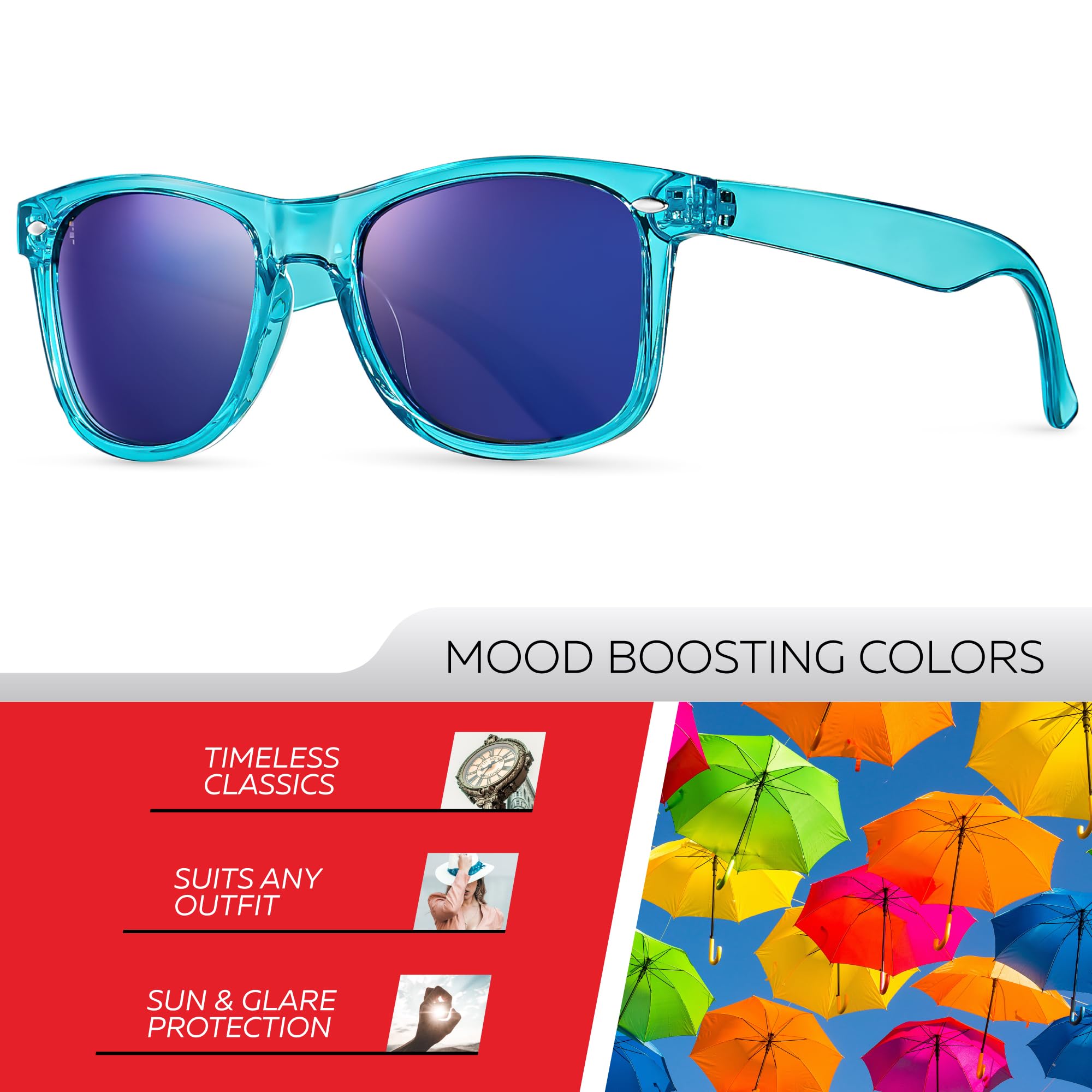🕶️ DESIGNED TO PLEASE ANY TASTE, ANY SHAPE AND MATCH ANY OUTFIT: The Retro Rewind Sunglasses are a mixture of vintage style, contemporary fashion, and modern technology. The sunglasses will put an exclamation point on your casual, business casual or athletic outfit and help you look sharp, crisp, and sophisticated! Available in 50+ color combinations.