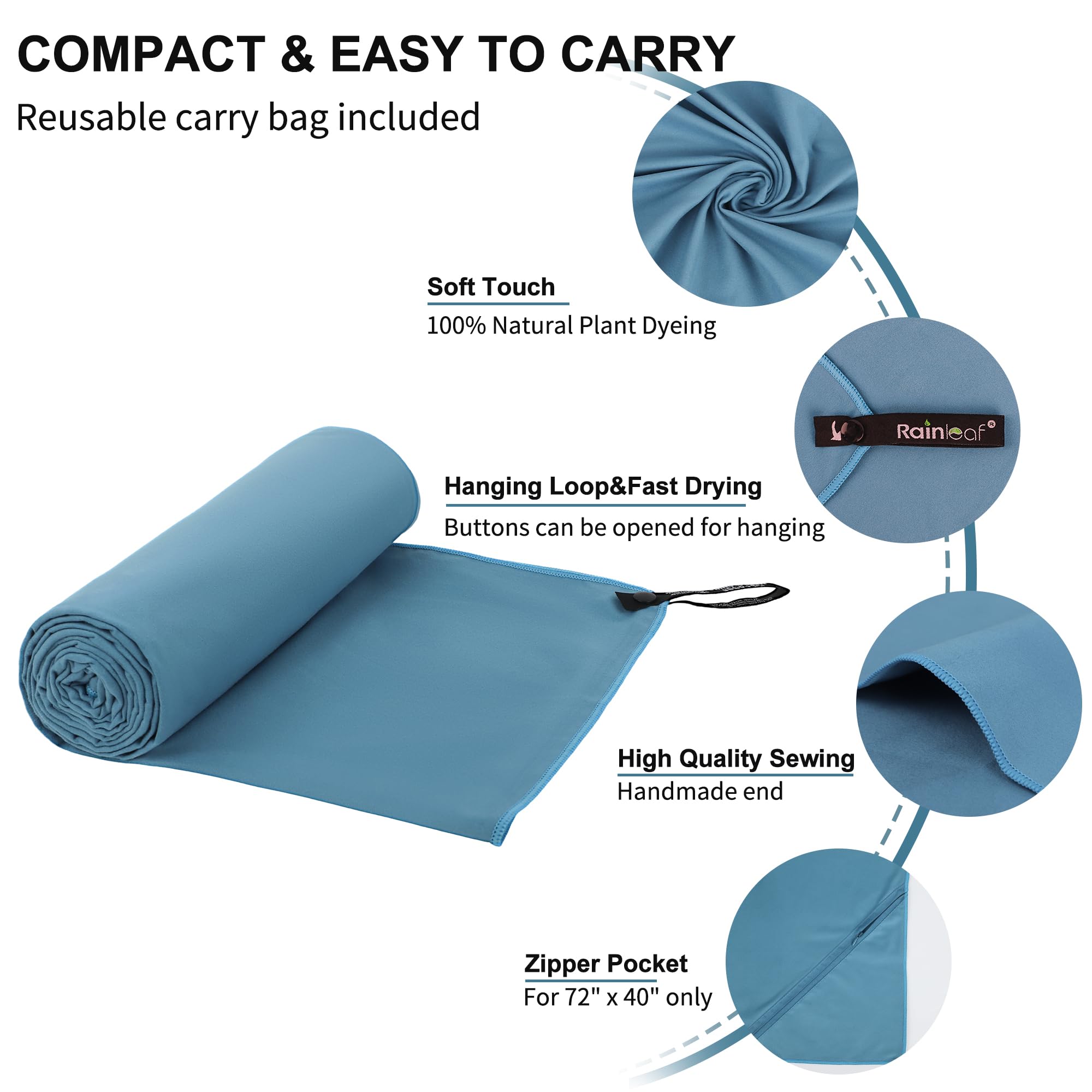 This Rainleaf microfiber towel is also machine washable, sand resistant, breathable and durable. Ideal for traveling, hiking, swimming, bath, sports, yoga.