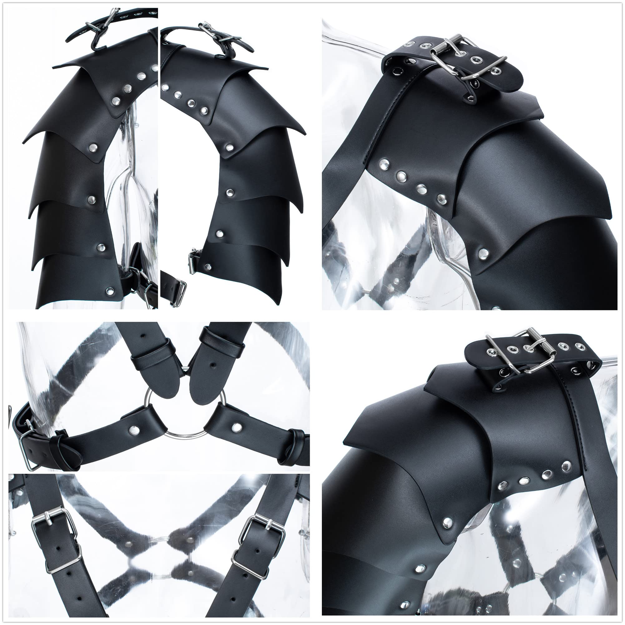 Package includes: Type1: PU leather chest belt *1, PU leather renaissance medieval waist belt *1, PU leather punk gothic bracer*2, 4-piece set. Type2: PU leather single shoulder cover cape belt *1,PU leather renaissance medieval waist belt *1, PU leather punk gothic bracer*2, 4-piece set. Type3: PU leather single shoulder belt *1, PU leather punk gothic bracer*2, 3-piece set. Type4-Type8: Shawl scarf *1,PU leather renaissance medieval waist belt *1, PU leather punk gothic bracer*2, 4-piece set. Type9-Type10: PU leather renaissance medieval waist belt *1, PU leather punk gothic bracer*2, 3-piece set. Type11: PU leather single shoulder belt *1, Shawl scarf *1,PU leather renaissance medieval waist belt *1, PU leather punk gothic bracer*2, 5-piece set. Type12: PU leather shoulders cover cape belt *1,PU leather renaissance medieval waist belt *1, PU leather punk gothic bracer*2, 4-piece set. Type13: Shawl scarf *1, PU leather shoulders cover cape belt *1,PU leather renaissance medieval waist belt *1, PU leather punk gothic bracer*2, 5-piece set. Type14: PU leather single shoulder belt *1, Shawl scarf *1,PU leather renaissance medieval waist belt *1, PU leather punk gothic bracer*2, 5-piece set. Unisex medieval knight leather belt shawl men women's steampunk renaissance accessory half shoulder cape scarf buckle bracers sash armlet armband armor shrug retro no belt eyelets renaissance waist belt accessories cosplay party costume Faux leather shoulder dragonscale armor shrug belt cosplay party costume outfit renaissance medieval waist belt punk gothic bracer shawl scarf Armor armor is fully wearable and comfortably made.string ties make it fairly adjustable to different arm sizes.