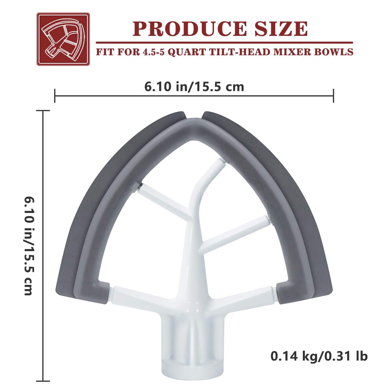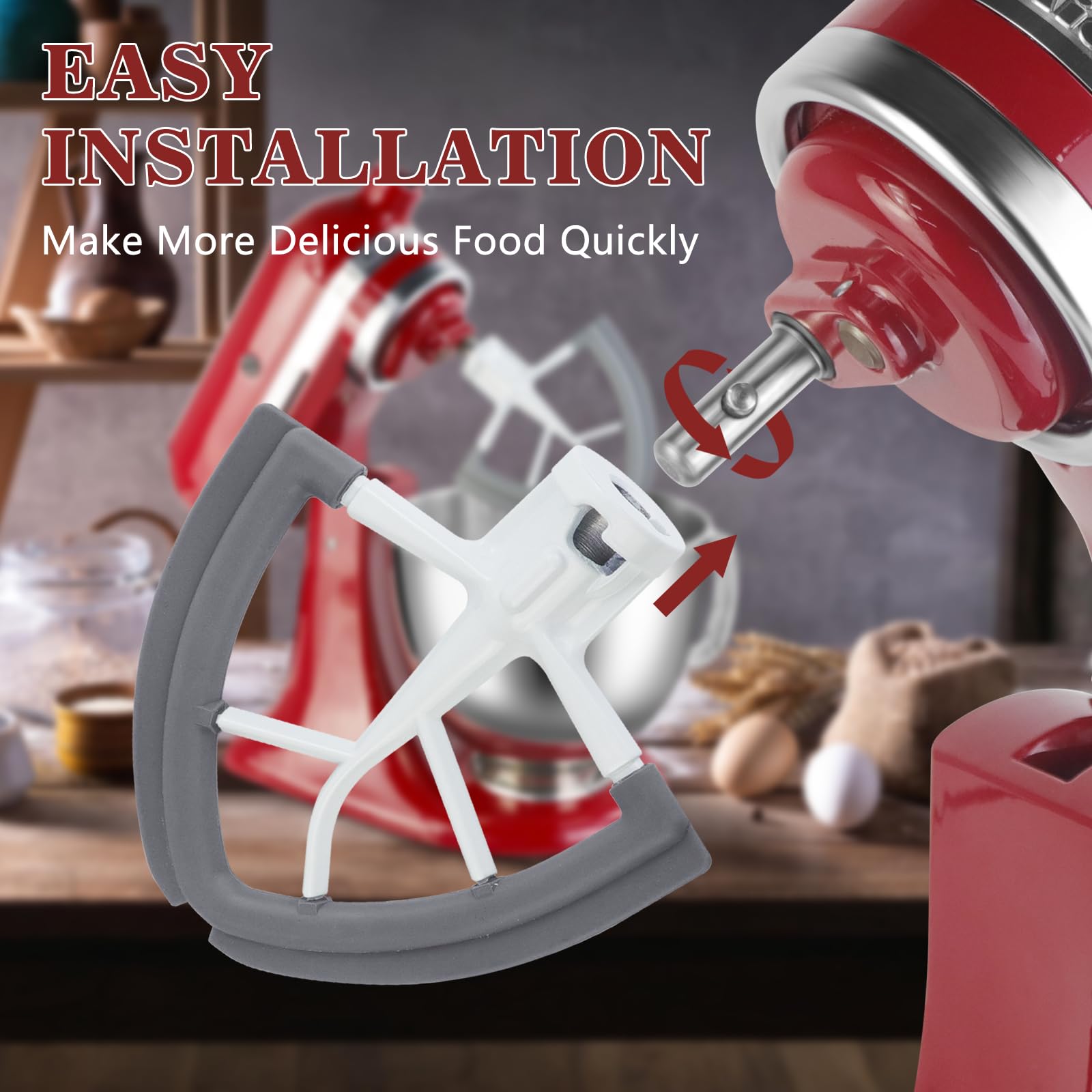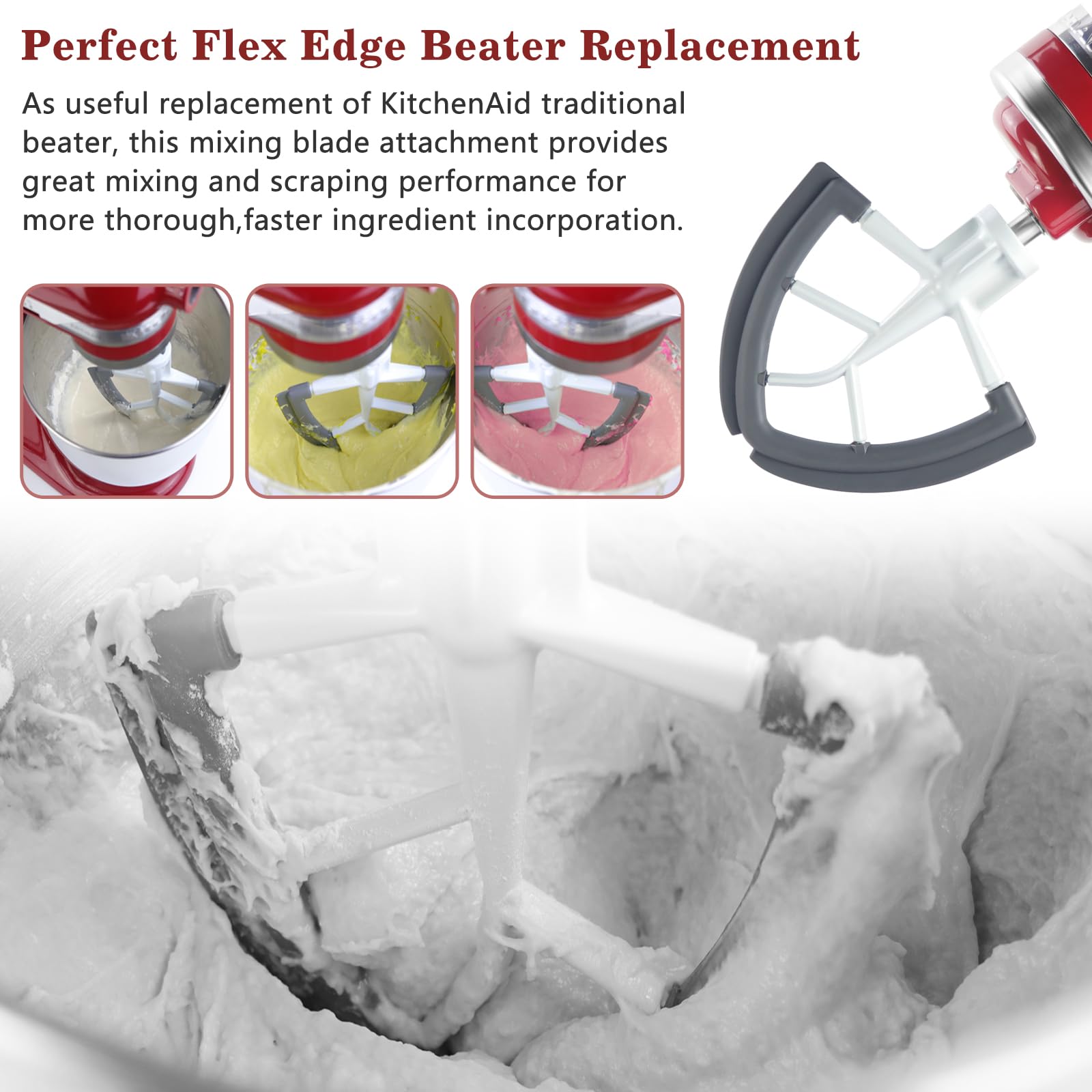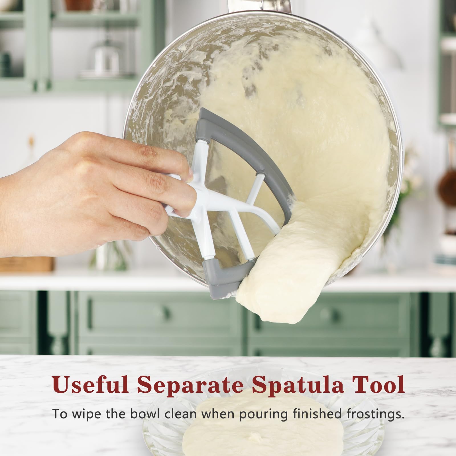 Reduce Mixing Time: Flex edge beater for mixer, Enjoy high mixing performance that minimizes hand-scraping and batter build-up on the blade, scrapes the residue at the bottom thoroughly maintains safe wattage draw, save energy and time 50% less.