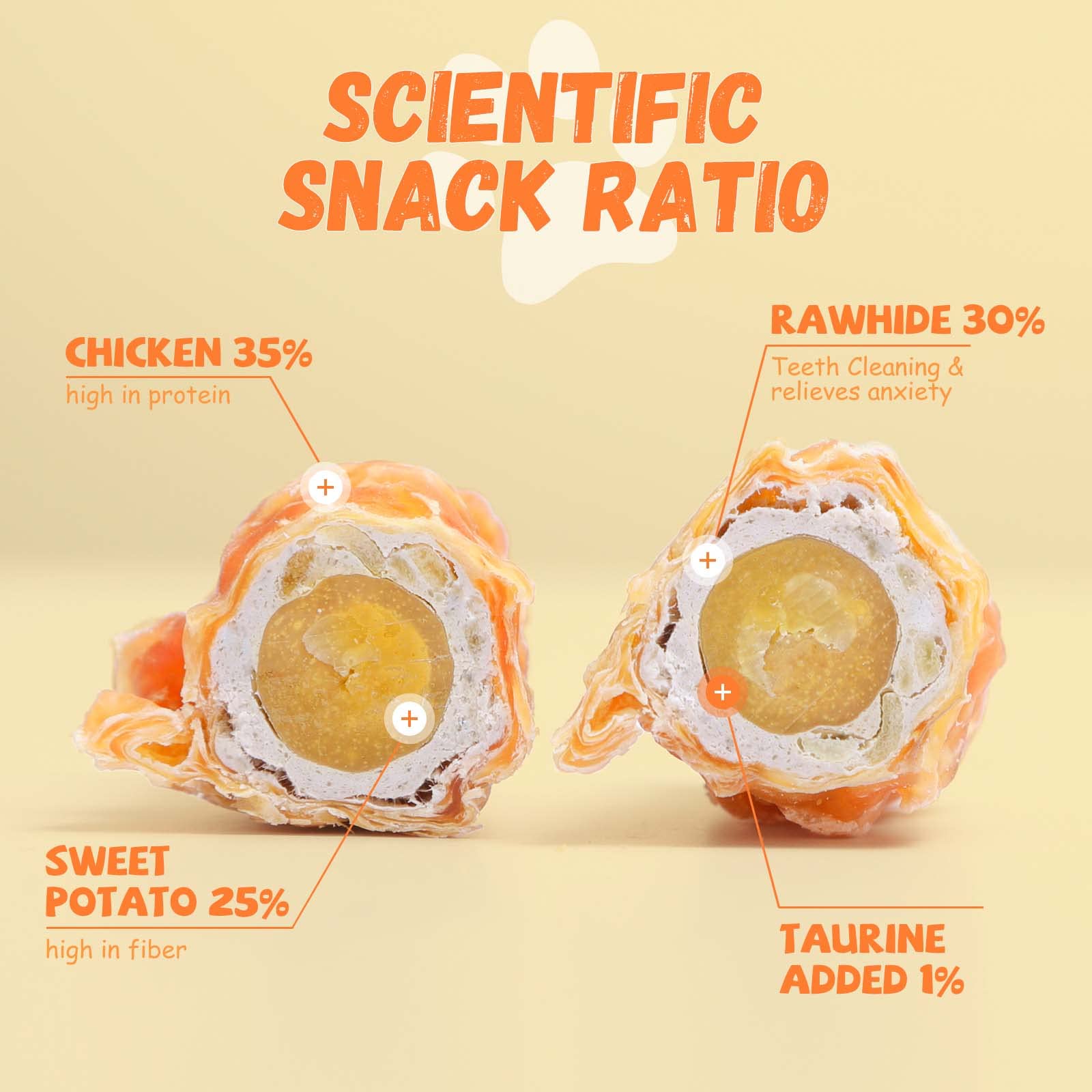 Dental Health: Chewing on the rawhide component of these treats helps promote dental health by reducing plaque and tartar buildup, while also satisfying your dog's natural urge to chew