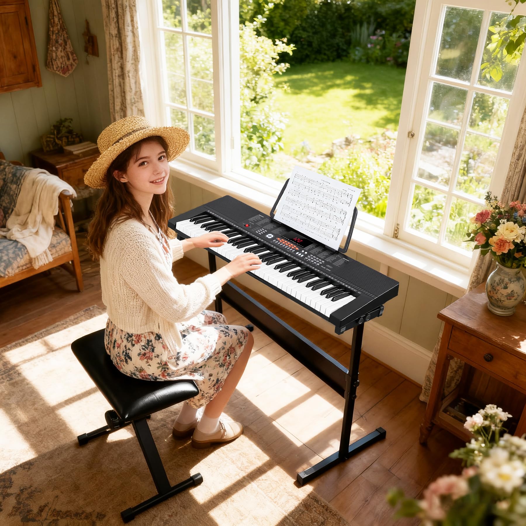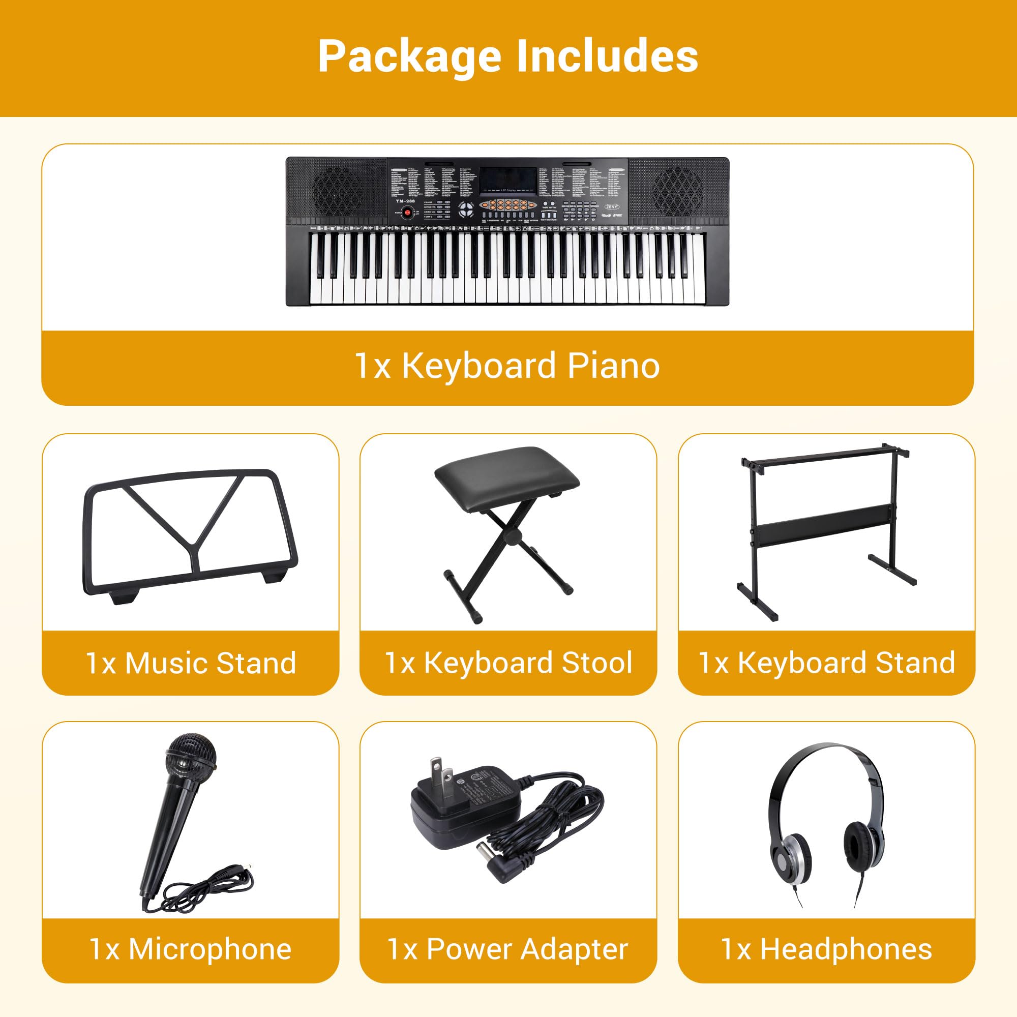 【A Perfect Gift】-- With an keyboard stand, music stand, padded stool, microphone and more, and with the sturdy cardboard package, very convenient for storage and consolidation, great birthday/ Christmas gift/ festival gift! And it is also an ideal gift for beginners and all music lovers