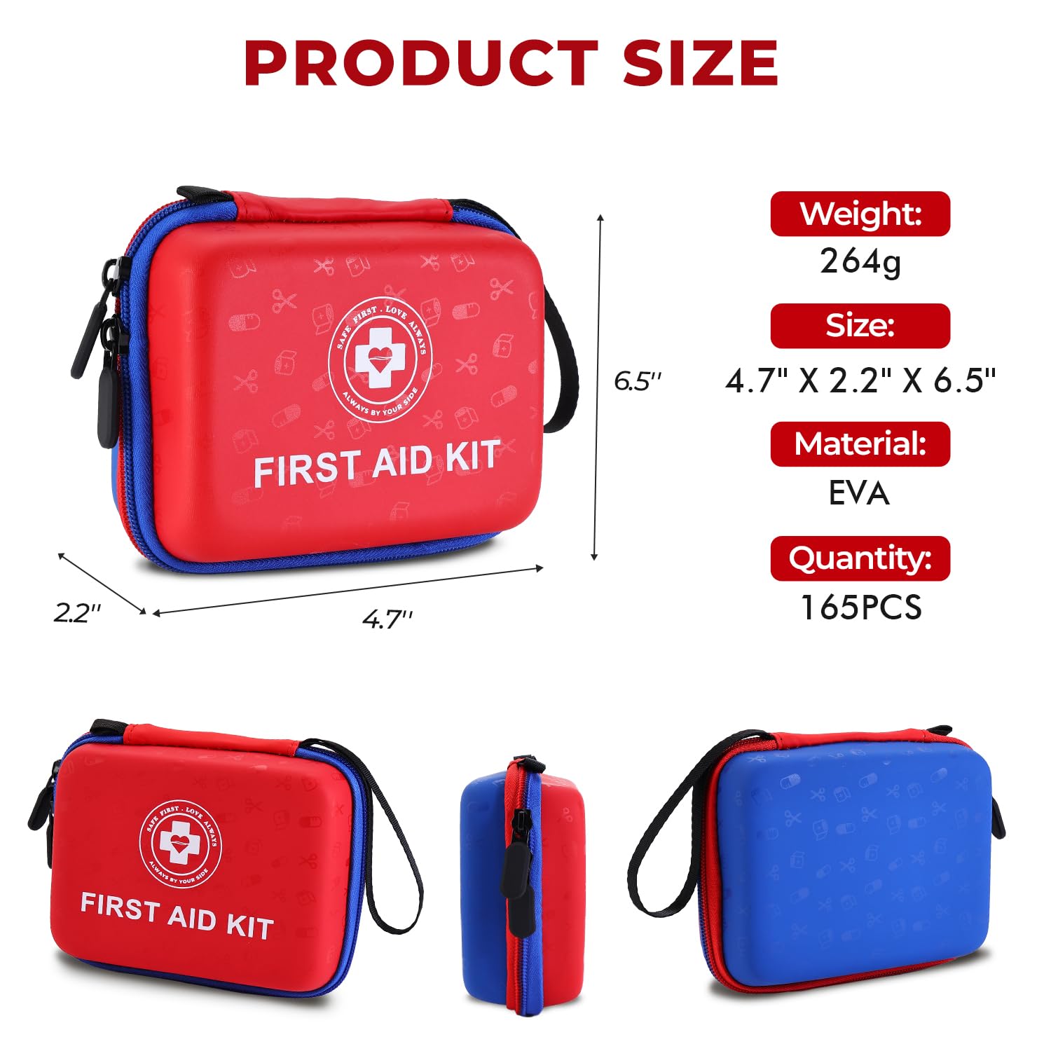 Ultra-Portable Design: Compact size of 6.4" x 4.7" x 2.2" (16.5 x 12 x 5.7 cm) and weighing just 0.58 lbs, this kit fits easily in backpacks, glove compartments, or desk drawers. Includes a bonus carabiner clip and reinforced handle for quick grab-and-go access during emergencies.