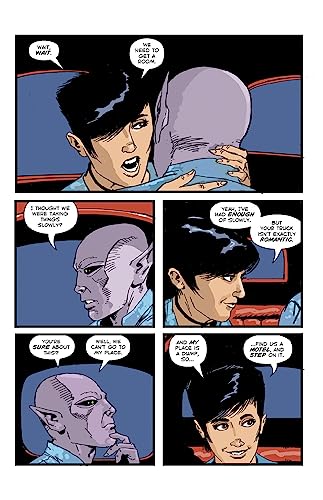 The comics that inspired the hit SyFy series continue! The agent who was trailing Harry tries to help him resolve his issues with the government, as things quiet down a bit in Patience. Harry and Asta grow closer, and all seems well with our alien and his found human family. But life always has a way of keeping things exciting, and big things can happen in small towns! Writer Steve Hogan and artist Steve Parkhouse return to the quaint town of Patience in Resident Alien Volume 7: The Book of Love. Collects Resident Alien: The Book of Love #1–#4.