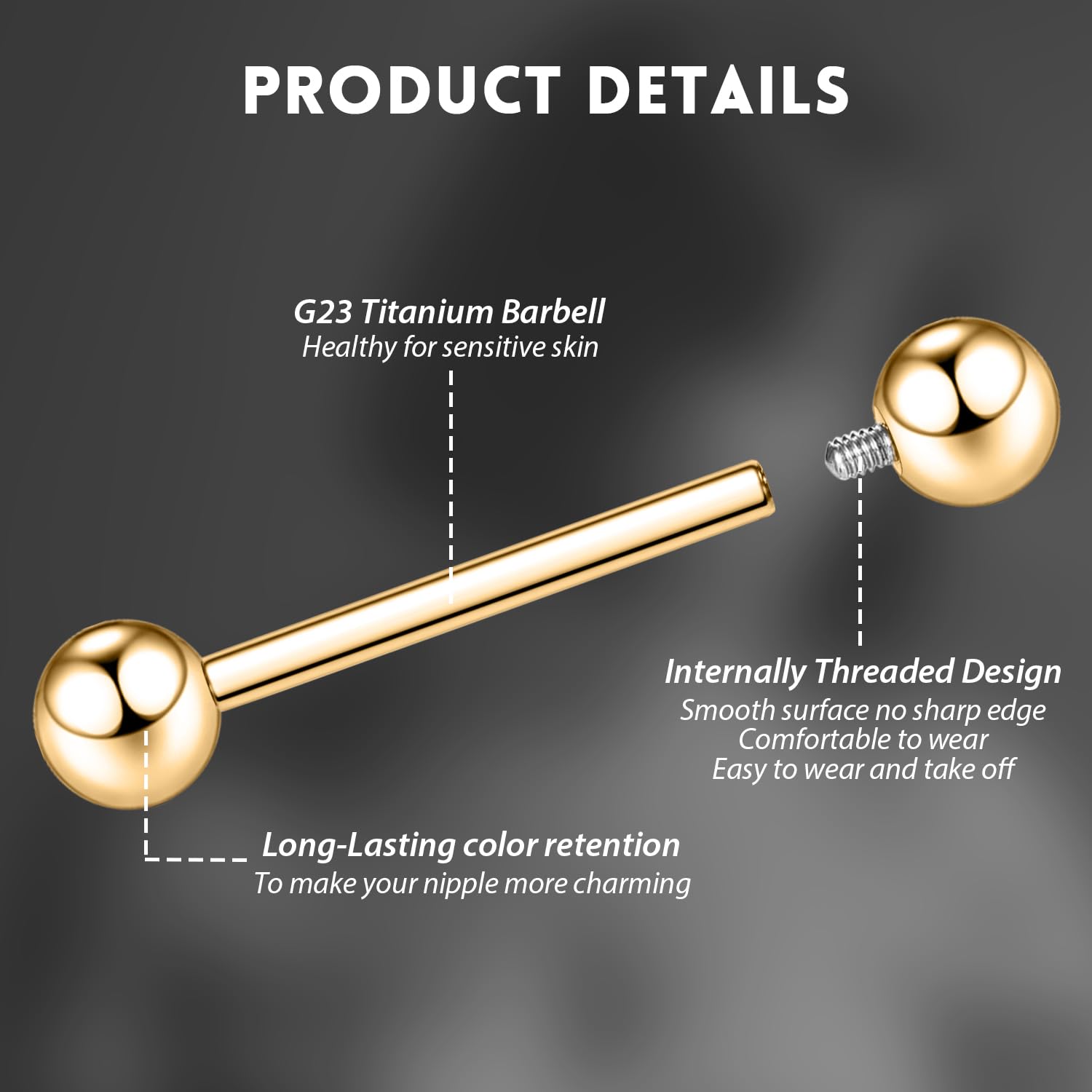 Attractive Style: The nipple ring with shiny cute ball on both side, make your nipple piercing more attractive