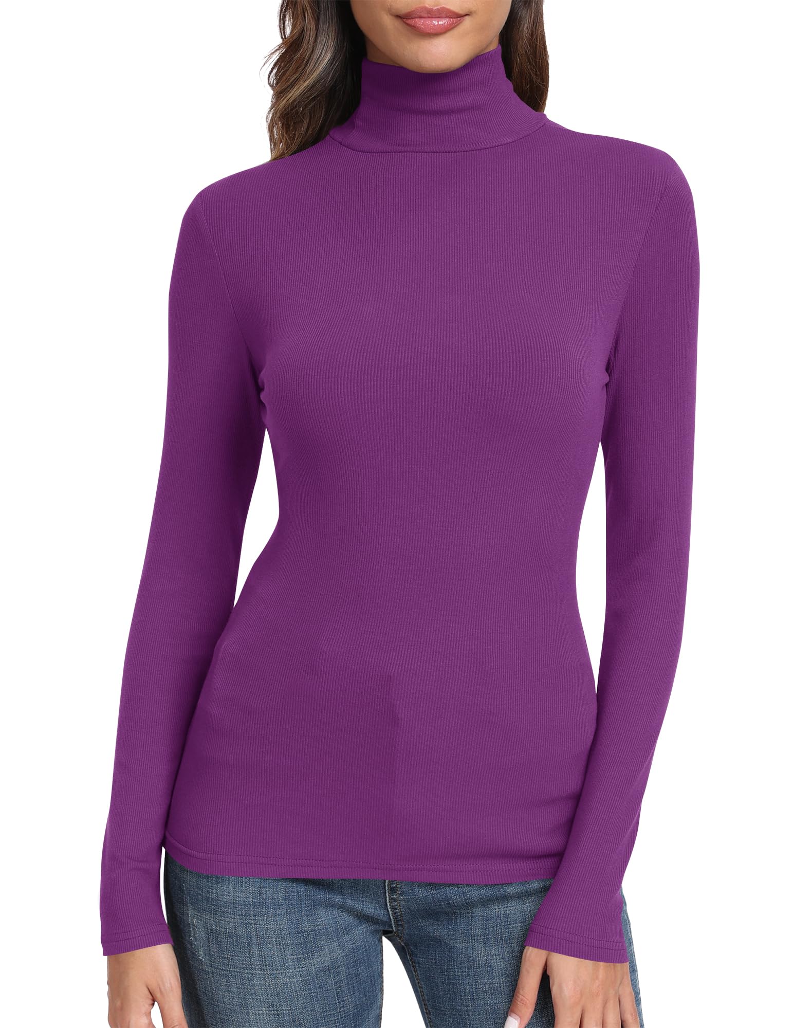 Fearure: Long sleeve shirt, women turtleneck shirt, comfy soft ribbed tshirt, slim fit layering tops.