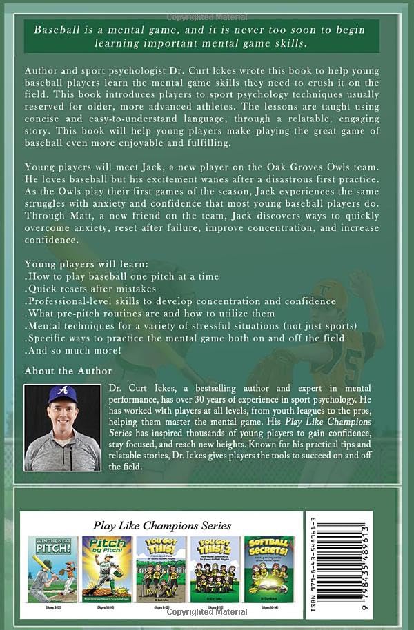 Win the Next Pitch! Essential Mental Game Skills for Young Baseball Players Parents and Coaches - help your players develop a great mental game with this exciting book! Baseball is a mental game. It’s a game that is played one pitch at a time. The goal is to be mentally ready for the most important pitch in any game—the very next one. Keeping young players calm and focused is key to success. Win the Next Pitch gives them the tools to do just that! Sport psychologist Dr. Curt Ickes wrote this book to help parents better prepare their 8-12-year-old baseball players to crush it on the field. This book introduces players to sport psychology skills usually reserved for older, more advanced athletes. The lessons are taught using concise and easy-to-understand language through a fun, relatable story. Win the Next Pitch will help young players elevate their game and make playing baseball even more enjoyable! Young readers will meet Jack, a new player on the Oak Grove Owls team. He loves baseball, but his excitement wanes after a disastrous first practice. As the Owls play their first games of the season, Jack experiences the same struggles with anxiety and confidence that most young baseball players do. Through Matt, a new friend on the team, Jack discovers quick ways to overcome anxiety, reset after failure, improve concentration, and increase confidence. These same mental game skills can apply to any performance situation, not just baseball! Young players will learn: How to play baseball one pitch at a time Quick resets after mistakes Professional-level skills to improve concentration and build confidence What pre-pitch routines are and how to use them Mental game skills that are used in a variety of stressful situations (not just sports) Specific ways to practice the mental game And so much more! Sports play a crucial role in developing skills like teamwork, character, and moral values, as well as improving physical abilities and overall well-being. This book will give you the tools to help your child succeed in sports. Don’t hesitate -- scroll up and buy your copy with one-click now!