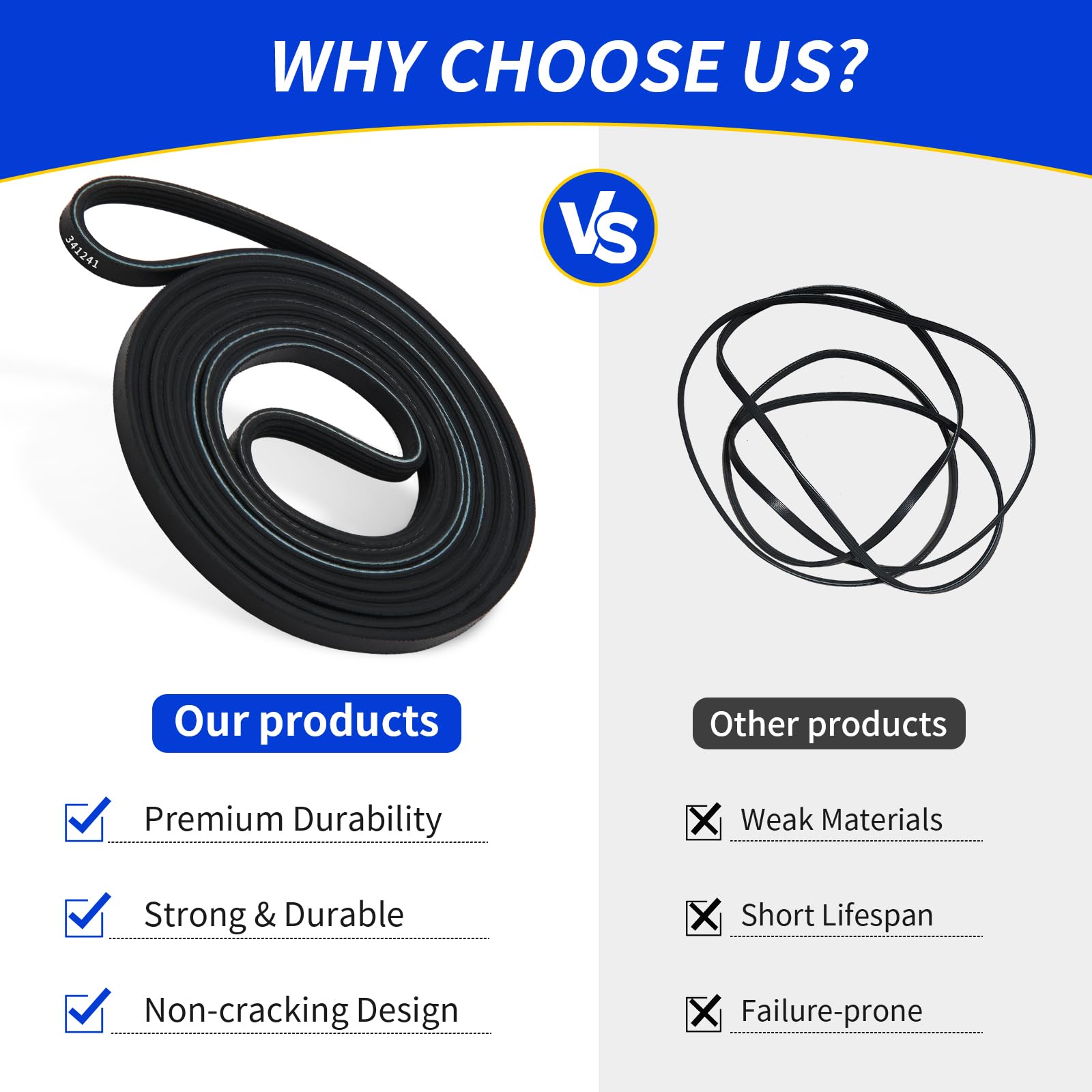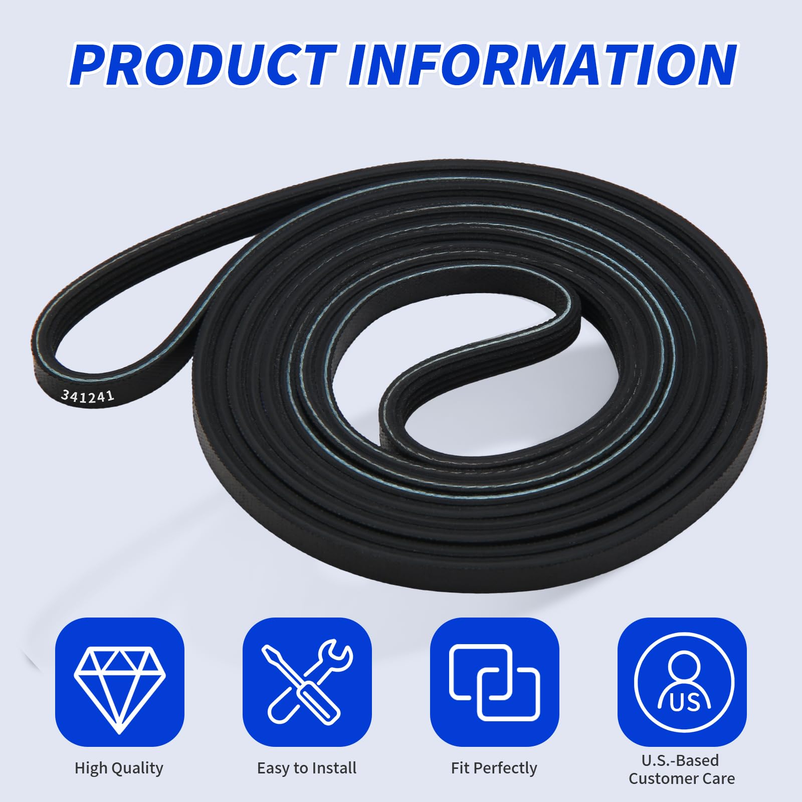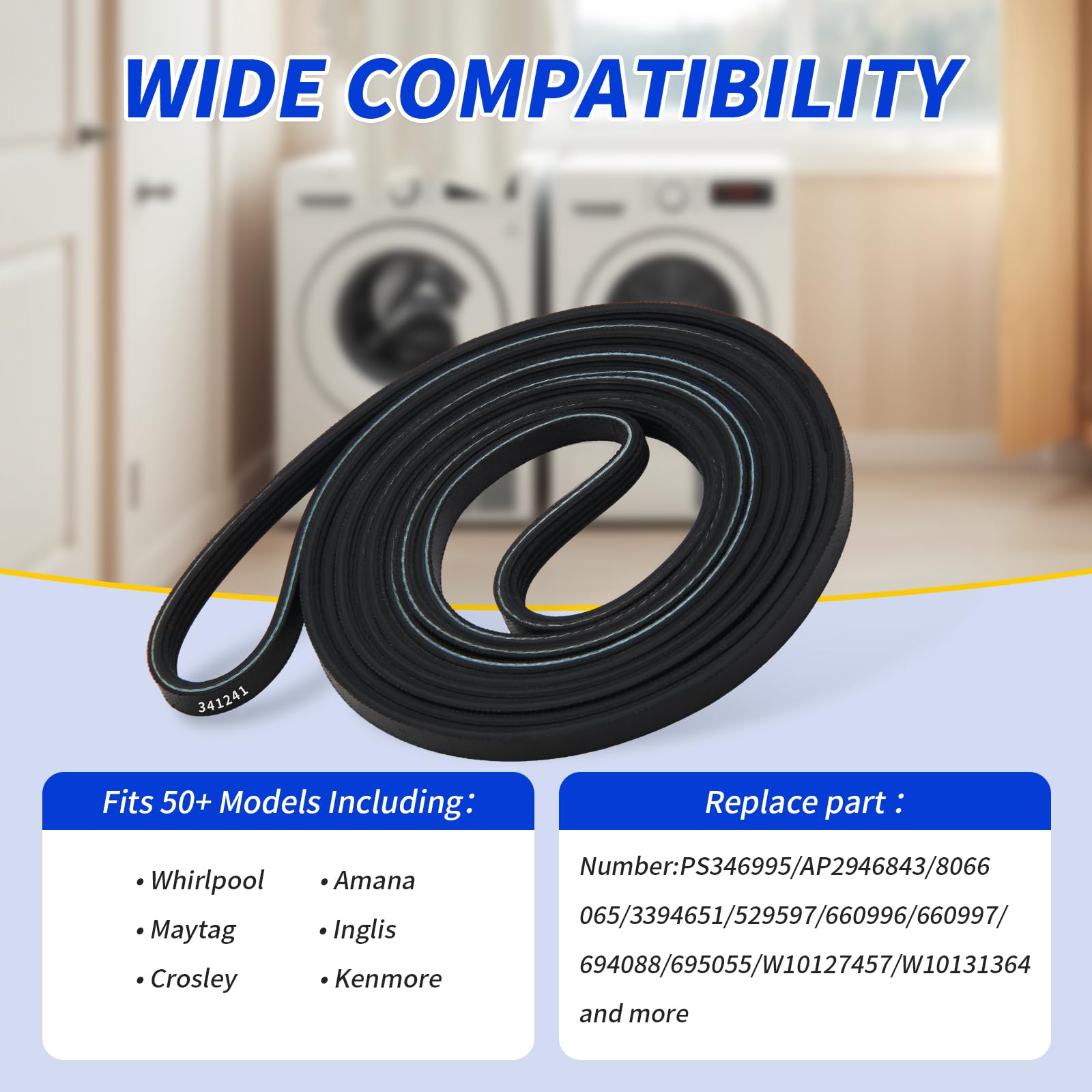 Model 341241 – Compatible Replacement for Original Dryer Belts: This high-quality drum belt is designed to match the performance and fit of the original OEM part, offering a reliable solution for Whirlpool, Kenmore, Maytag, and other major dryer brands