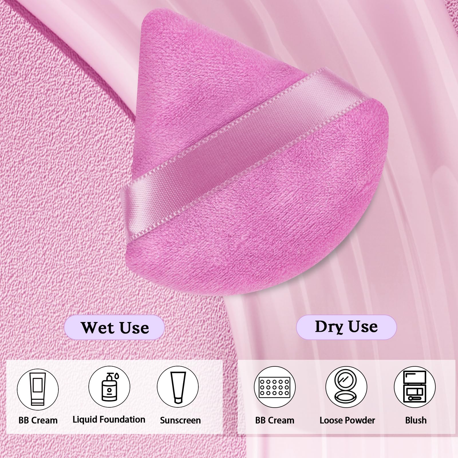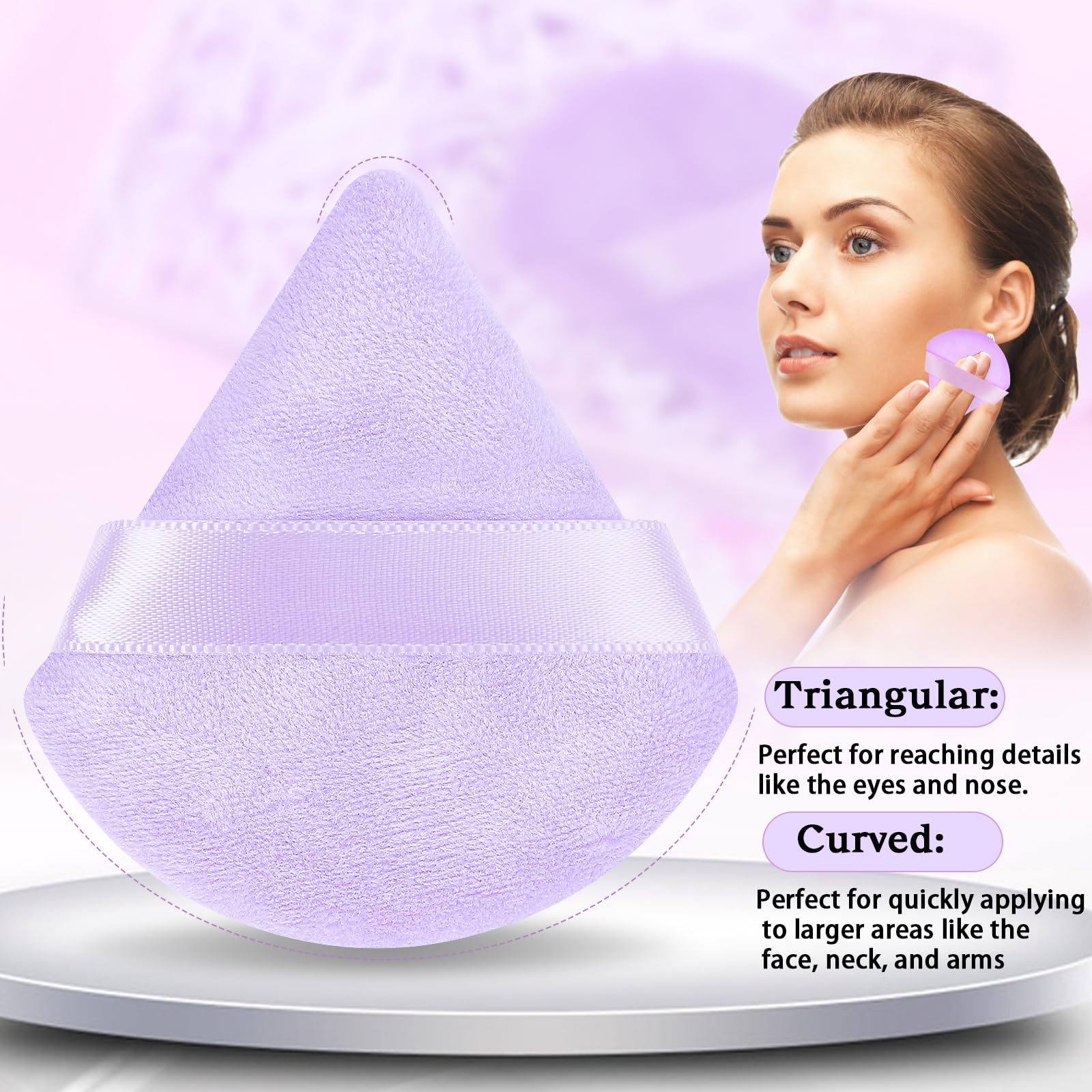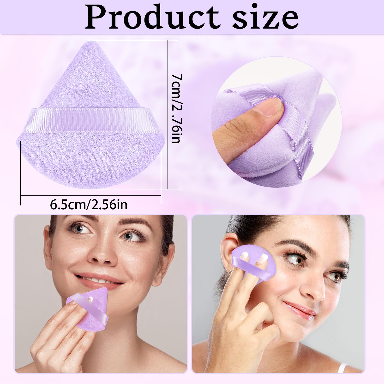 Hold Well: Each powder puff measures about 2.76 inch/ 7 cm, the normal size can fits your hand well, each makeup puff comes with 1 strap for you to hold well and easier to use the powder applicator, the triangle shape makes the makeup on T-zone easier