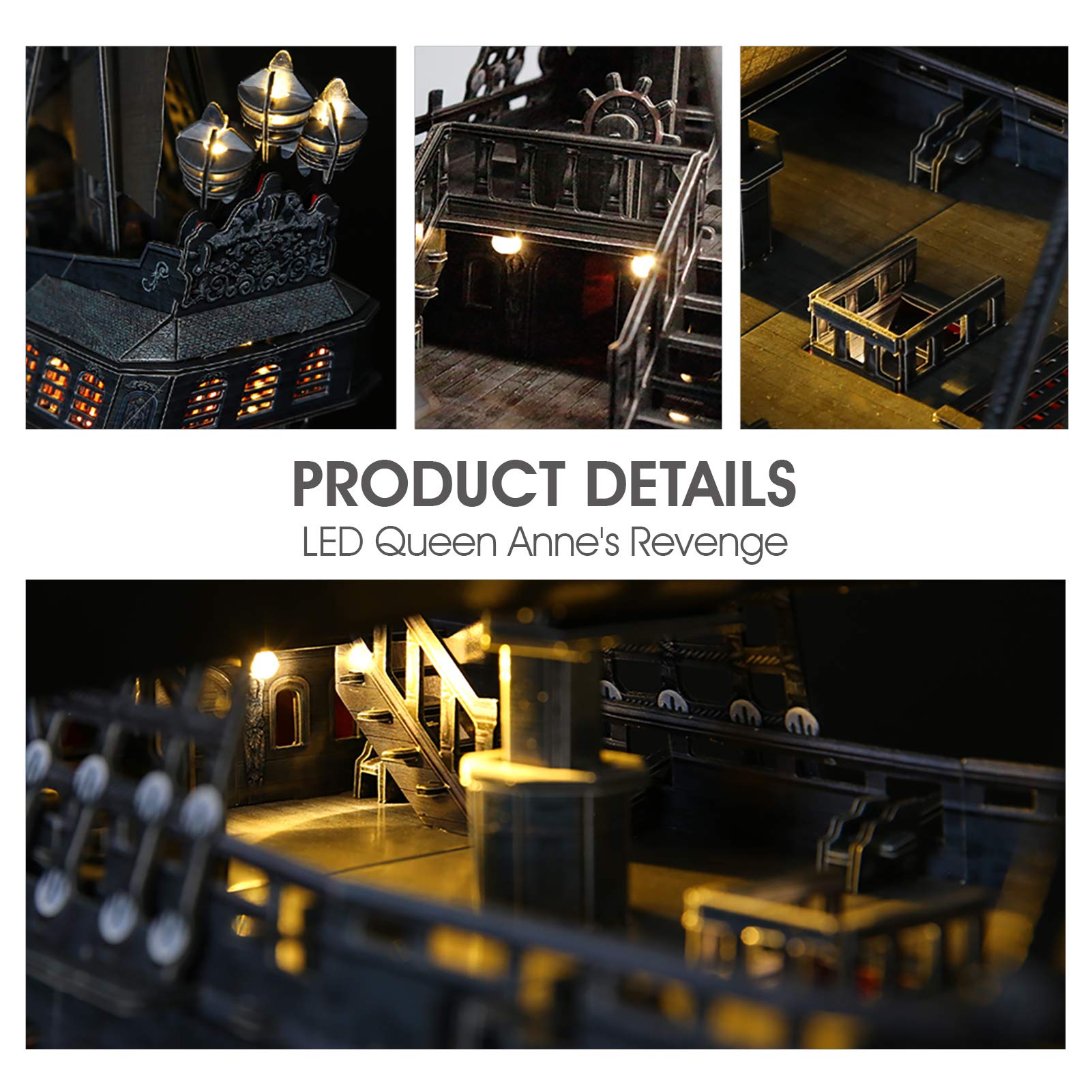 EMBARK ON A PIRATE ADVENTURE: Set sail with our 3D Queen Anne’s Revenge Puzzle. This pirate ship model, standing an impressive 25.2 inches tall and made up of 340 pieces, becomes a thrilling adventure, especially with 15 warm LED lights that bring it to life at night. You’d never guess it's made from foam board - it's a striking addition to any collection