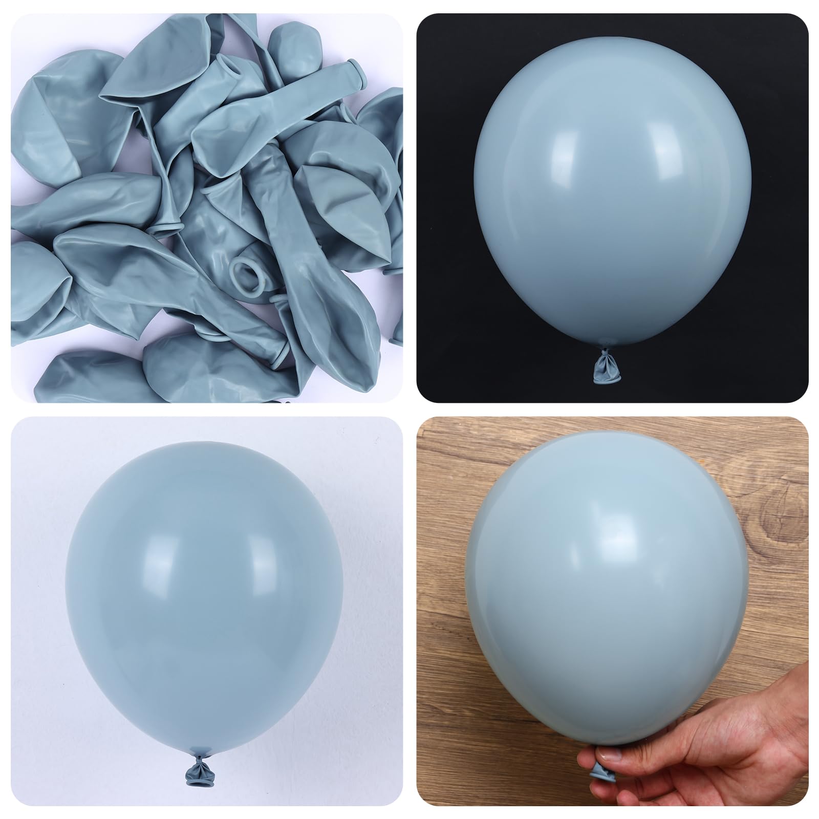 PREMIUM QUALITY: The Thicken dusty blue balloons are made of premium natural latex, which are sustained. Pale aqua blue latex balloons can be filled with air and helium. Please do not rub against overheated and sharp objects to avoid sudden popping.