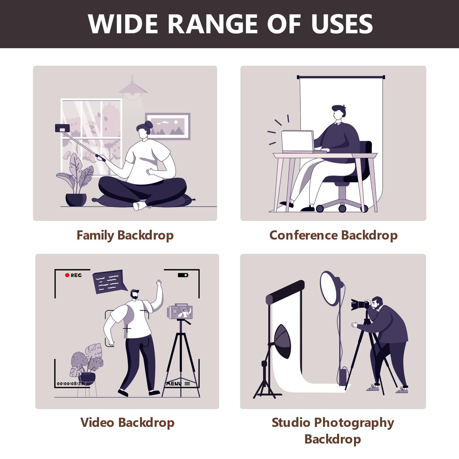 Made of 100% Thick Microfiber which is durable and makes sure every effective shooting.Vibrant color,not easy to get wrinkles or fade