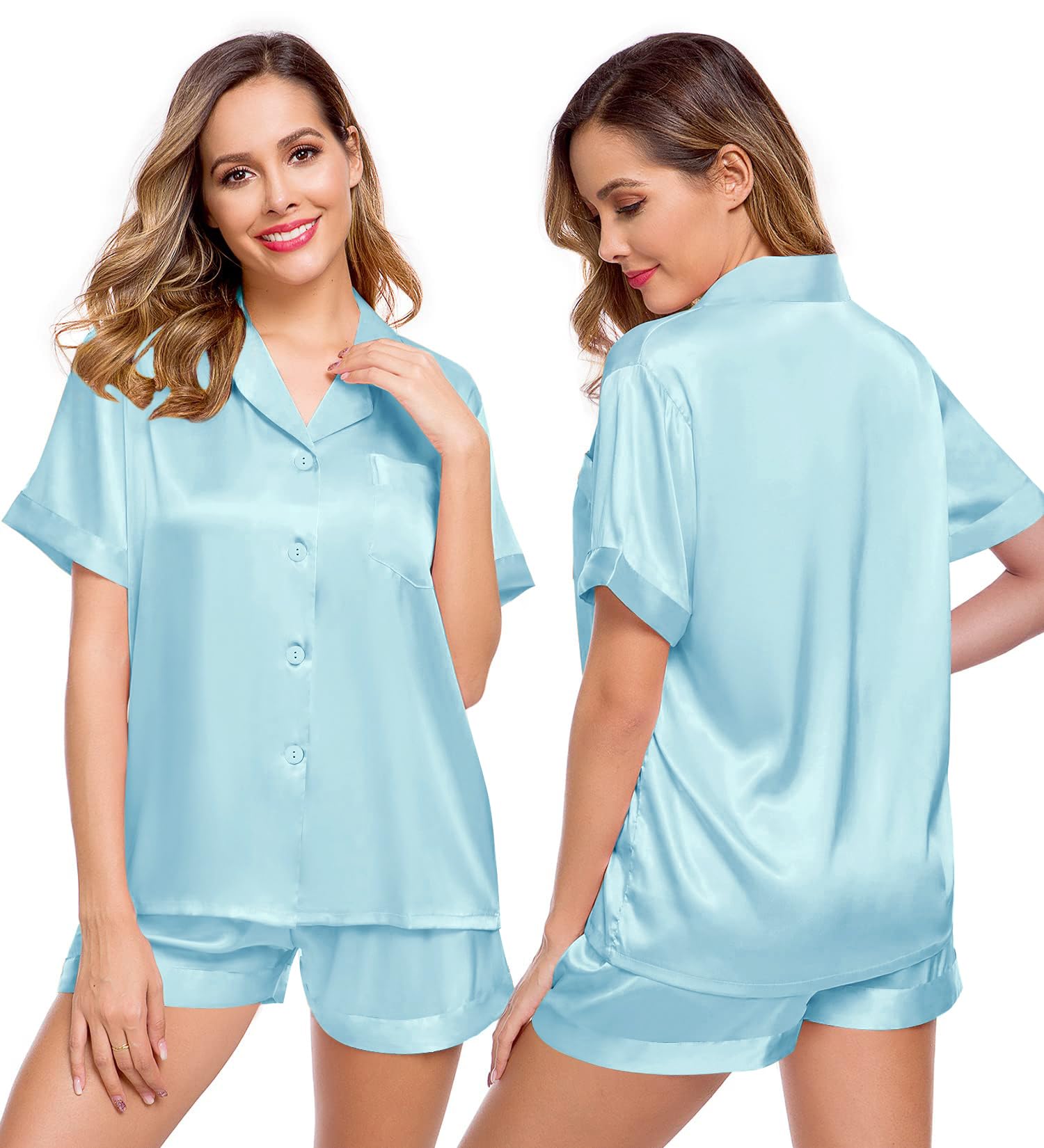 ❤ OCCASIONS: This womens short sleeve silk satin pajamas set is perfect for sleepwear, nightwear, loungwear.The lounge set can be worn as daily pajamas. Suitable for pajama party, girls day, bride wedding. Must have for your bridal party or just daily wear! This silk pajamas for women shorts set is lightweight and easy to carry.